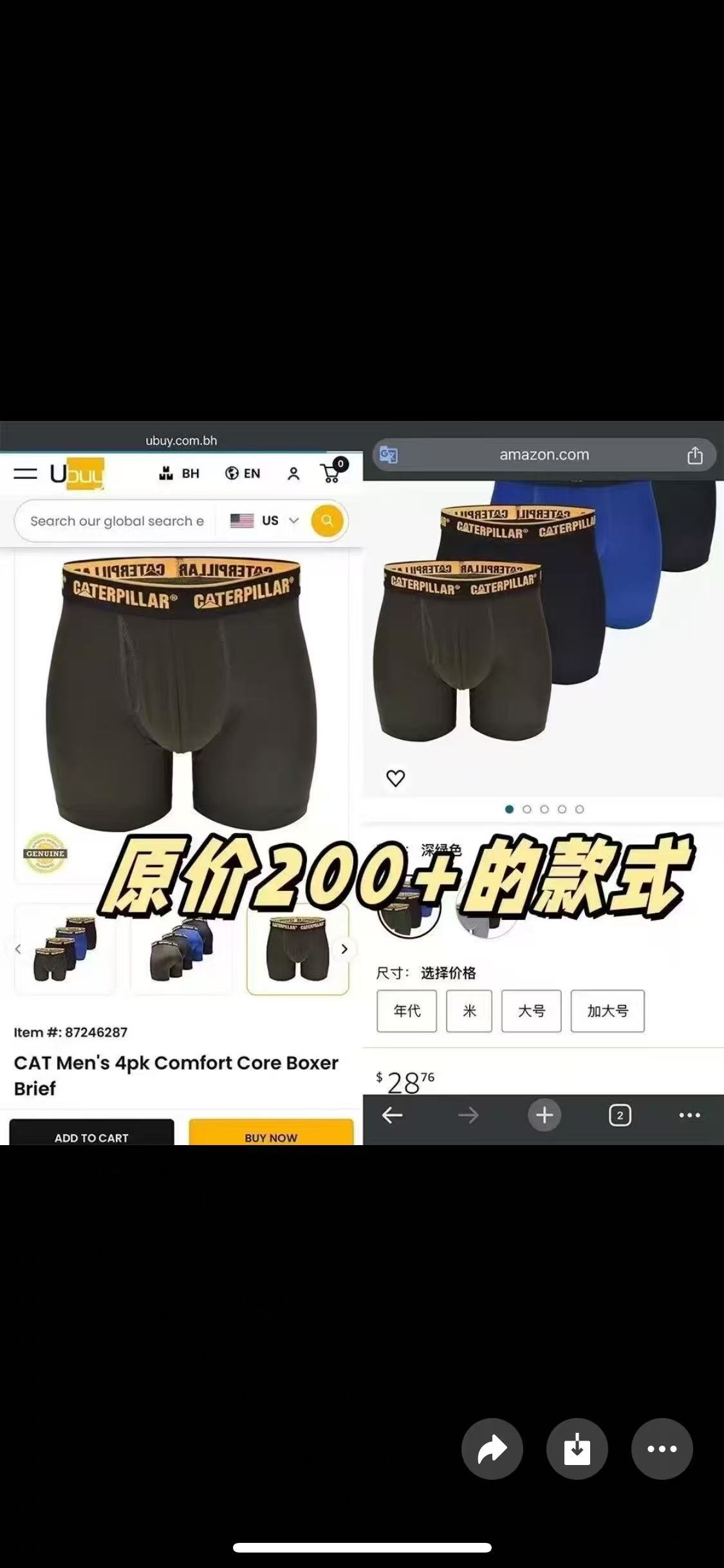 正品单。某网一盒200+,CAT正品运动内裤,一个四条装