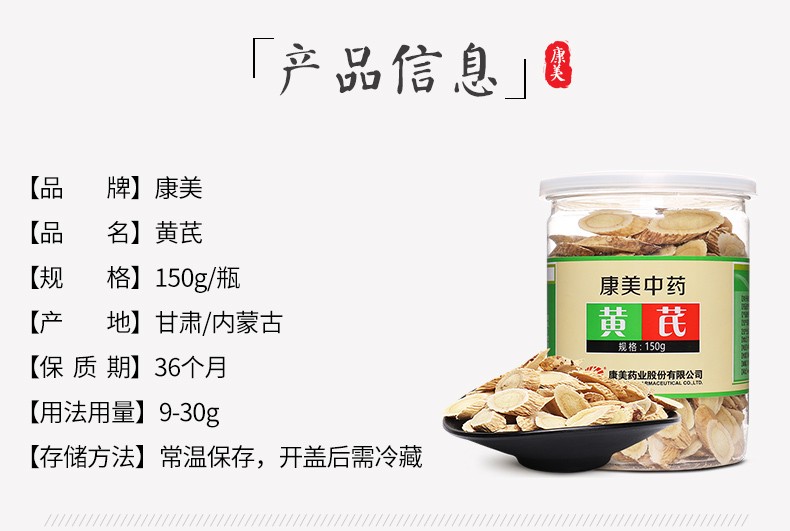 康美药业黄芪150g/瓶 可搭配党参枸杞大枣等代茶饮煲汤