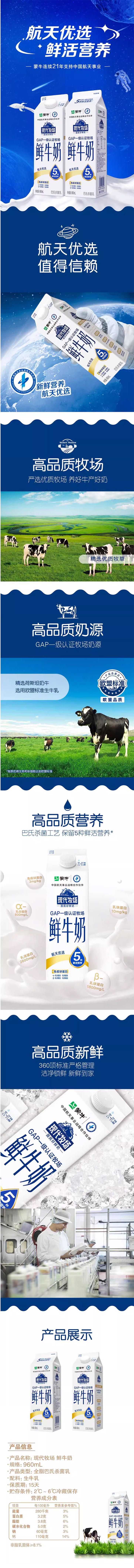 蒙牛现代牧场960ml鲜奶,保质期15天