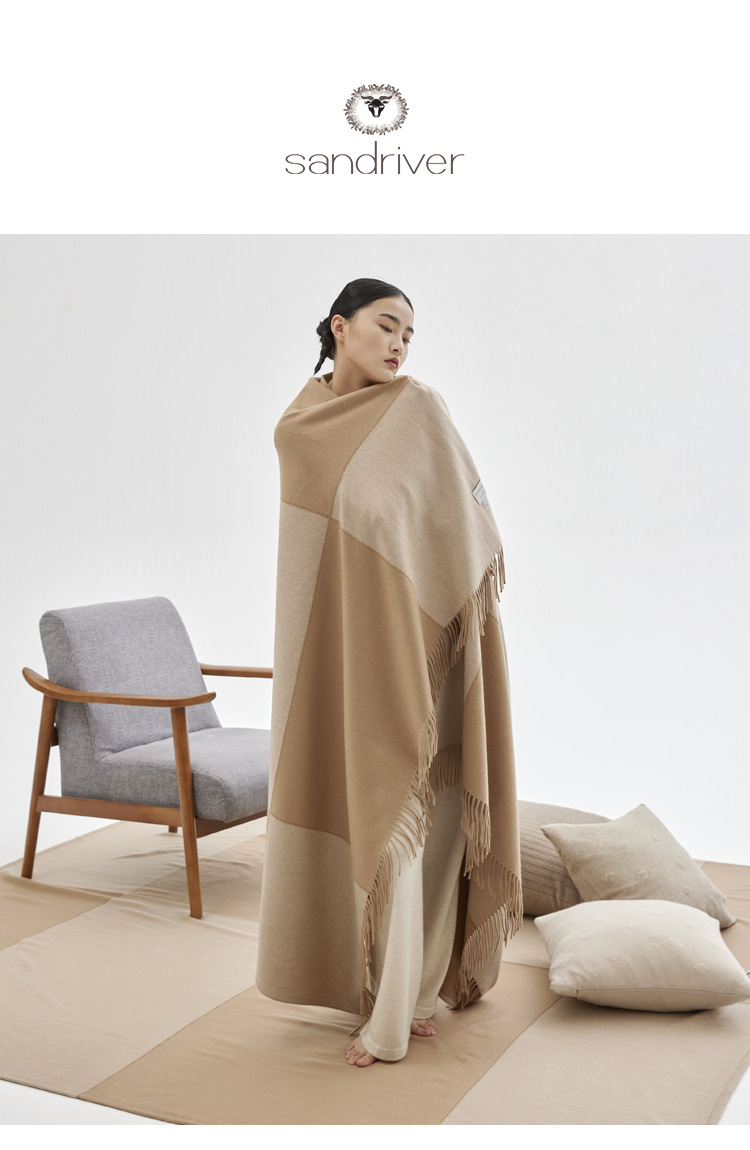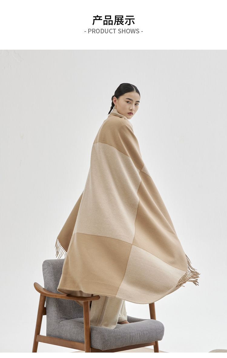 双色拼接羊绒披毯 SJF93P725N