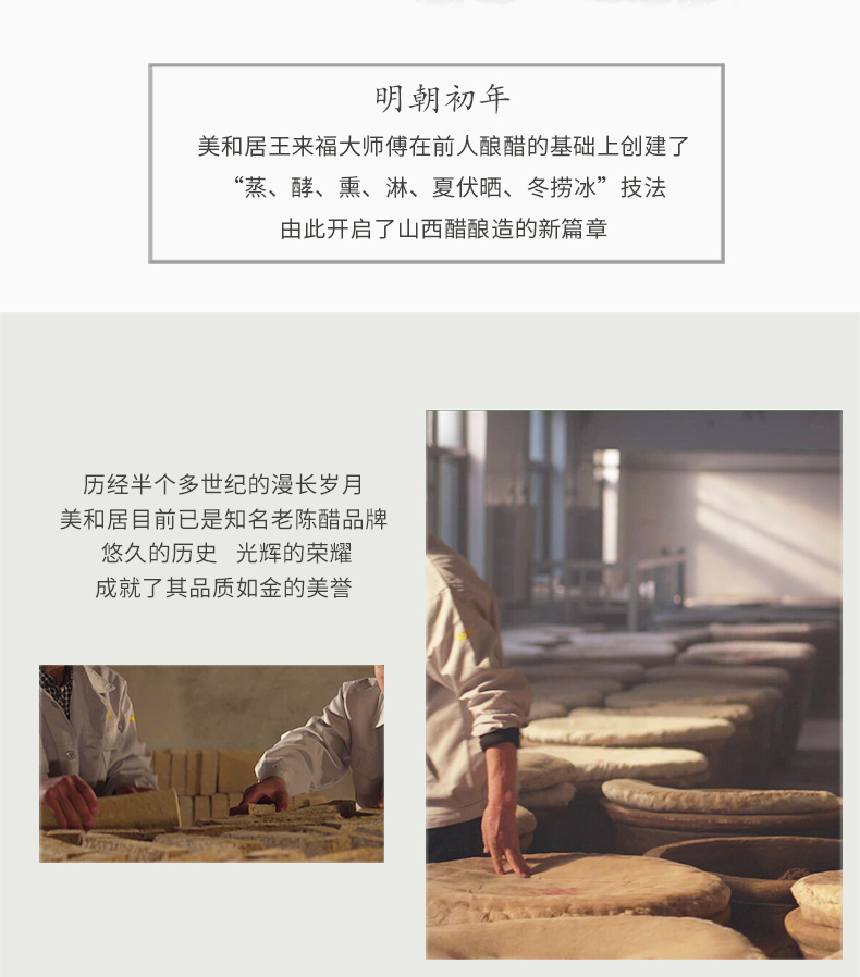 - 美和居始创于1368年,为山西老陈醋开创者,国家级非物质文化遗产酿制技艺,国家地理标志保护产品!