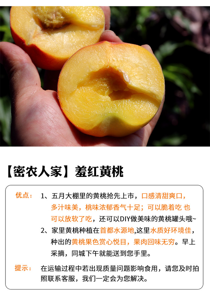 尝鲜啦 羞红黄桃 自然成熟 新鲜水果 农家肥 现摘现发 500g