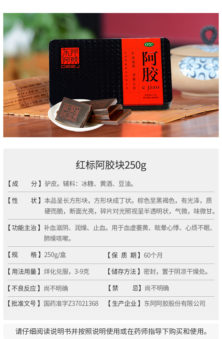 顺丰】东阿阿胶250g阿胶块片补气血滋阴润燥止血心烦不眠肺燥咳嗽