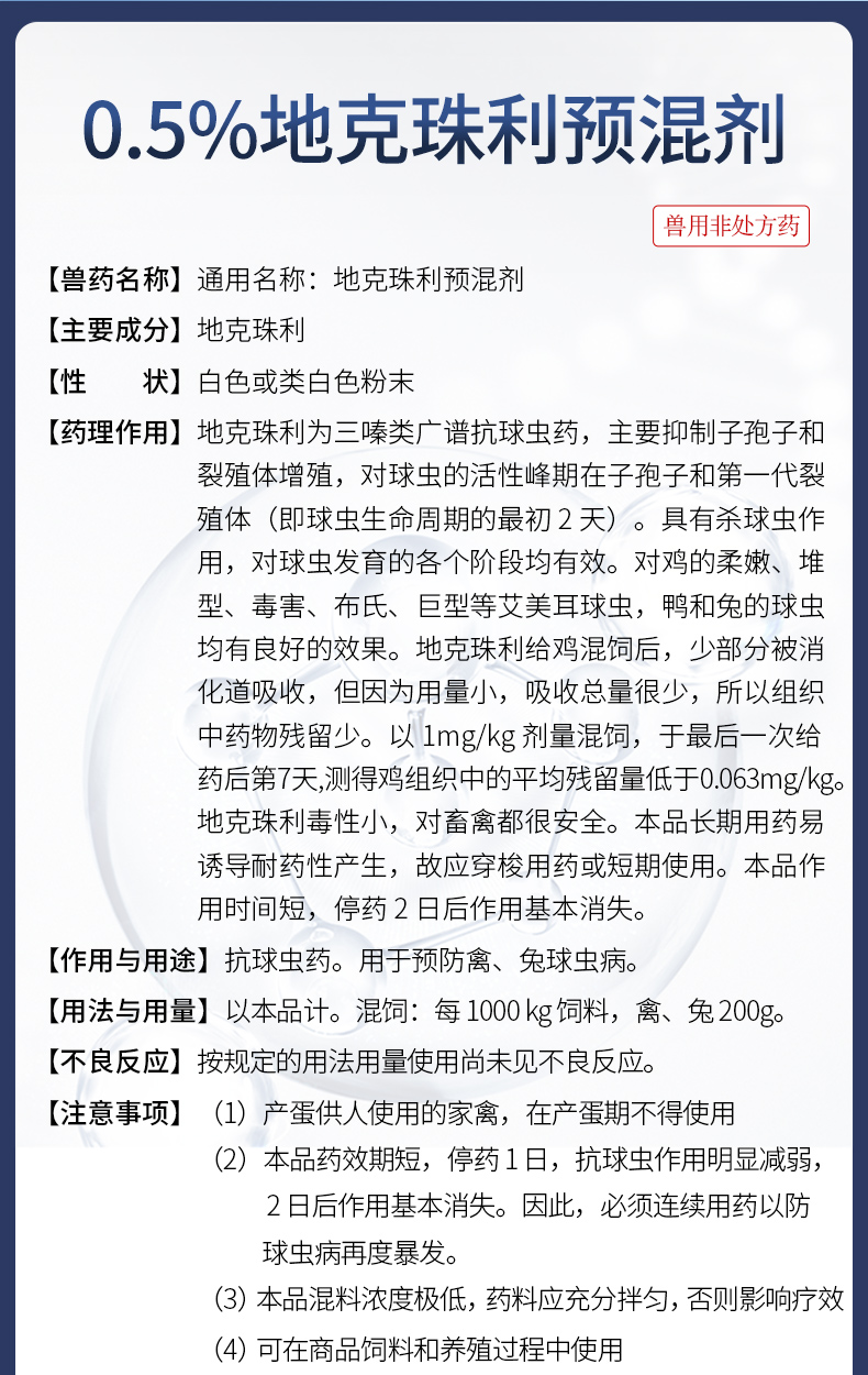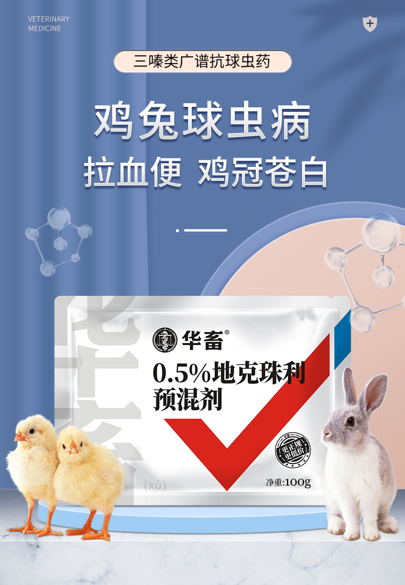 兽药地克珠利预混剂 体内驱虫 鸡冠发白 羽毛松散 预防禽、兔球虫病