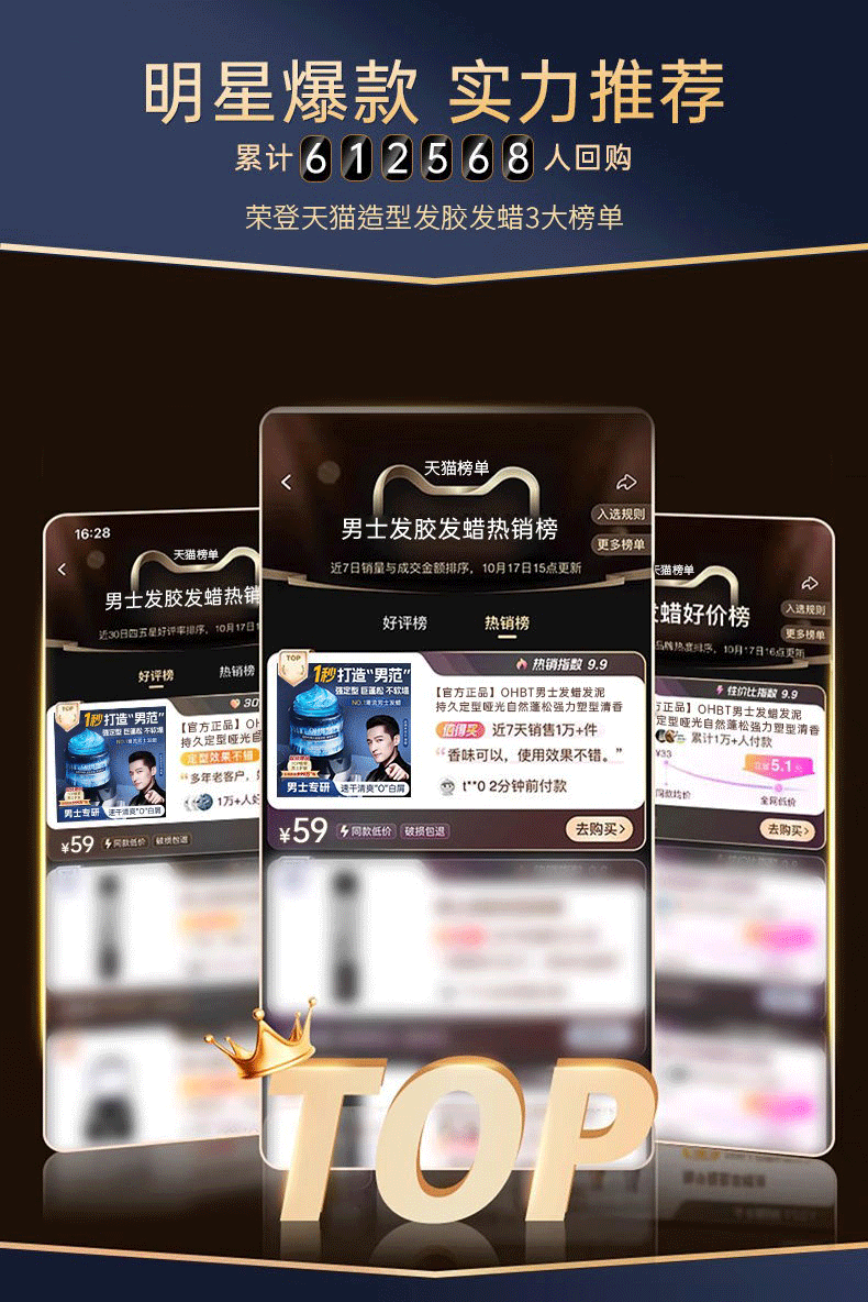 男士发蜡发泥发胶定型喷雾自然持久蓬松碎发整理造型神器啫喱膏水