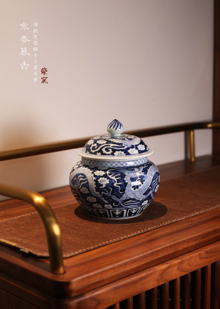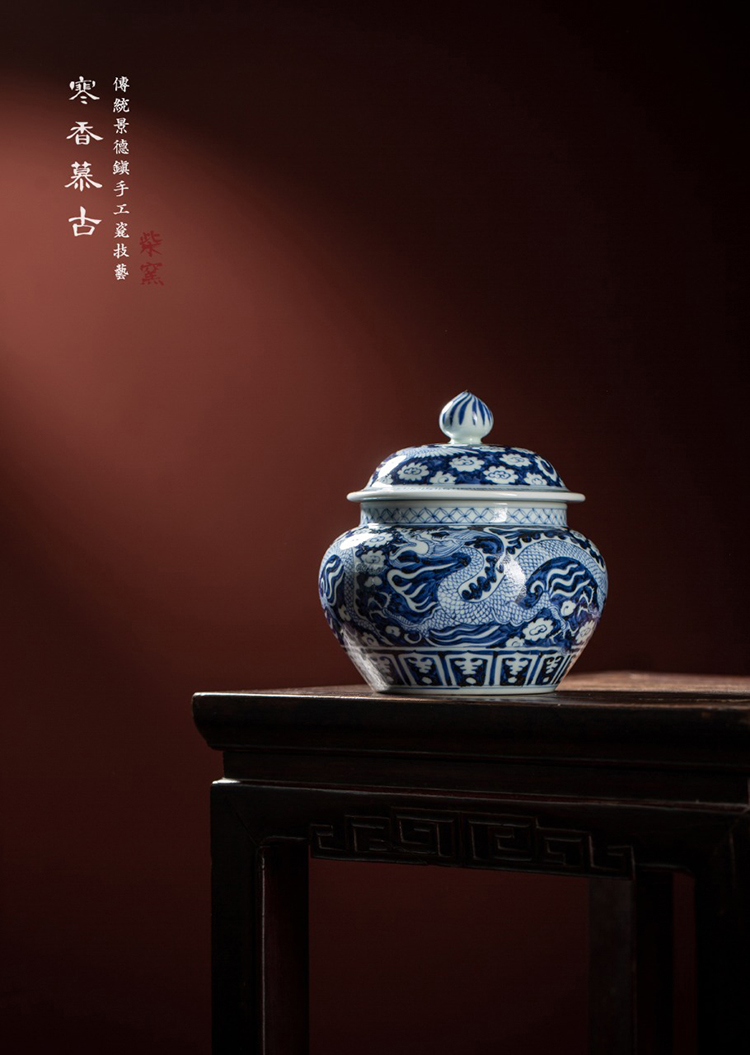 寒香慕古元青花双龙纹茶叶罐