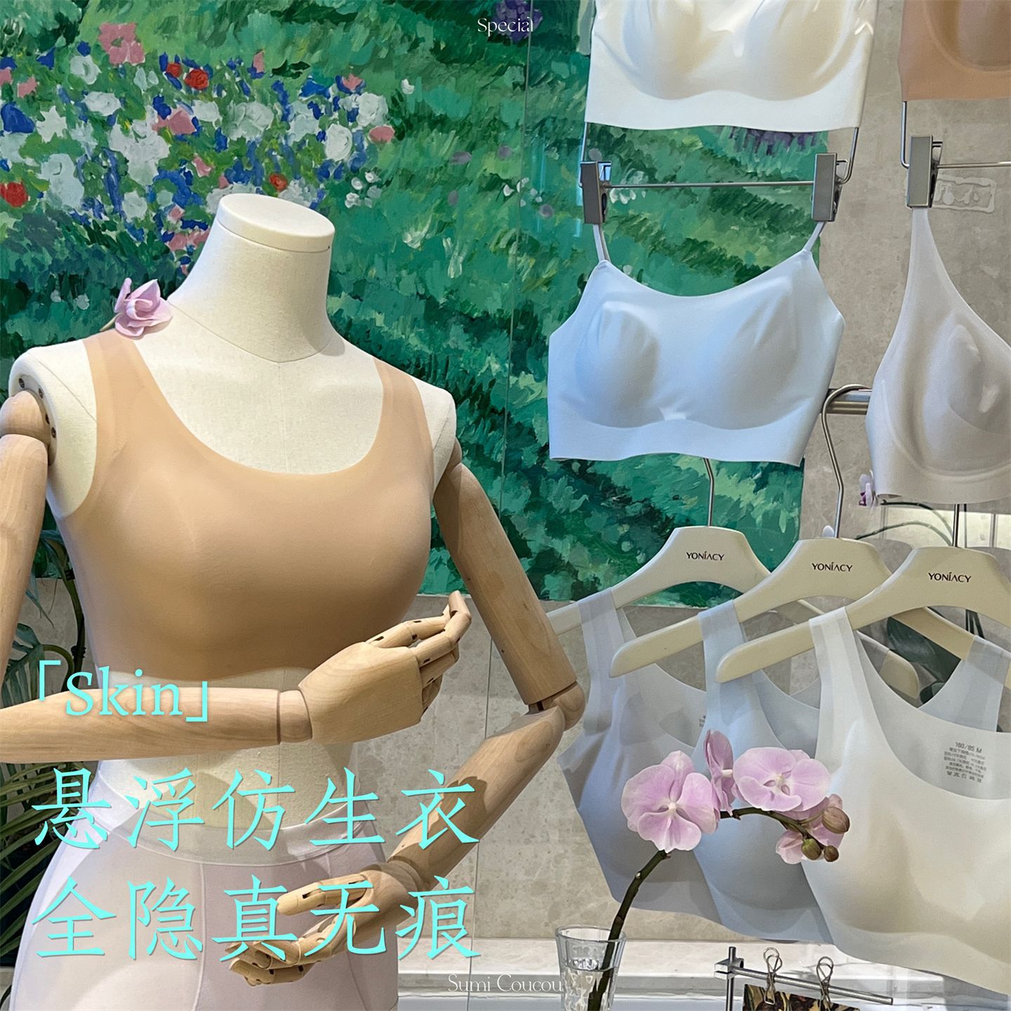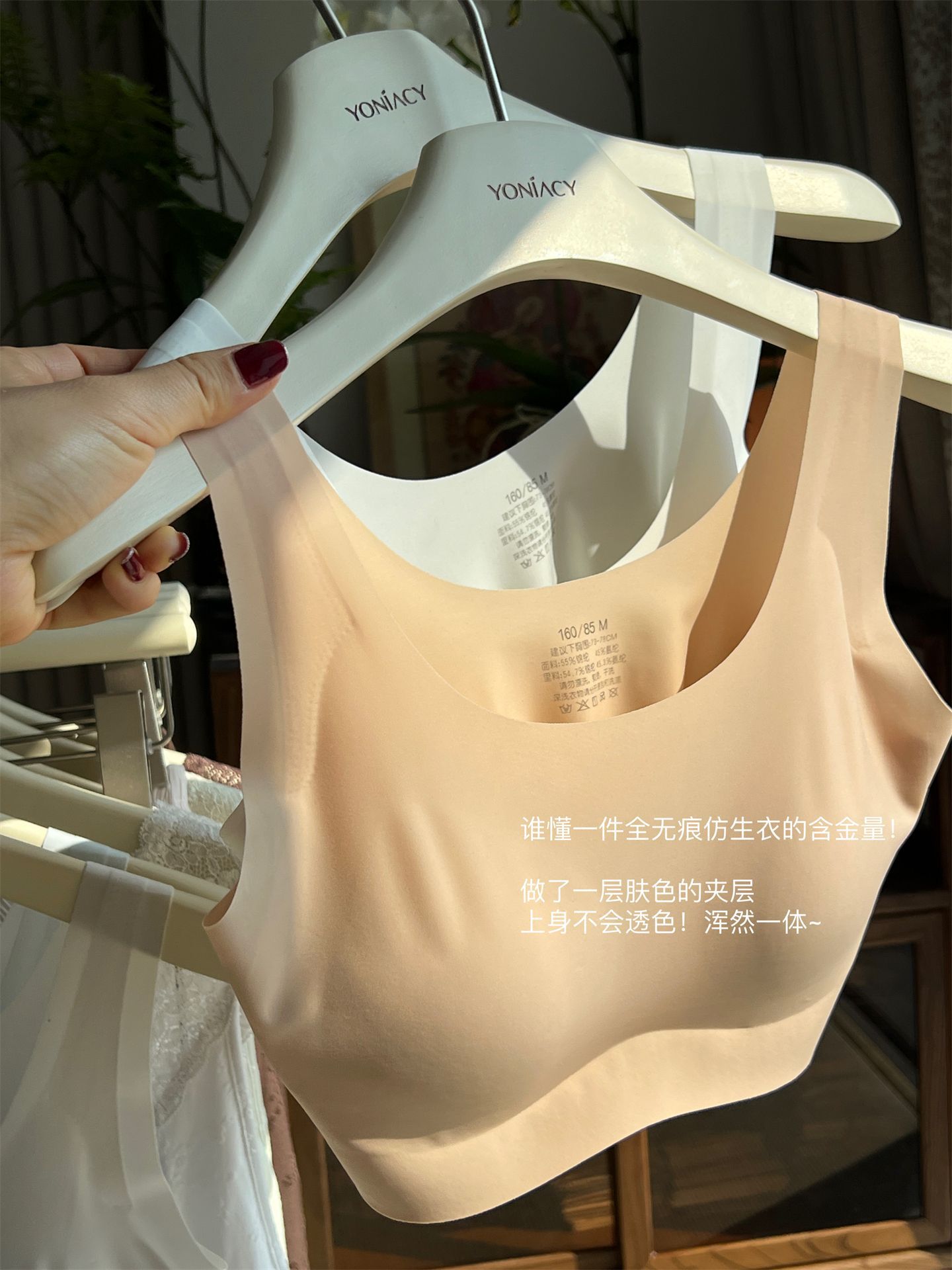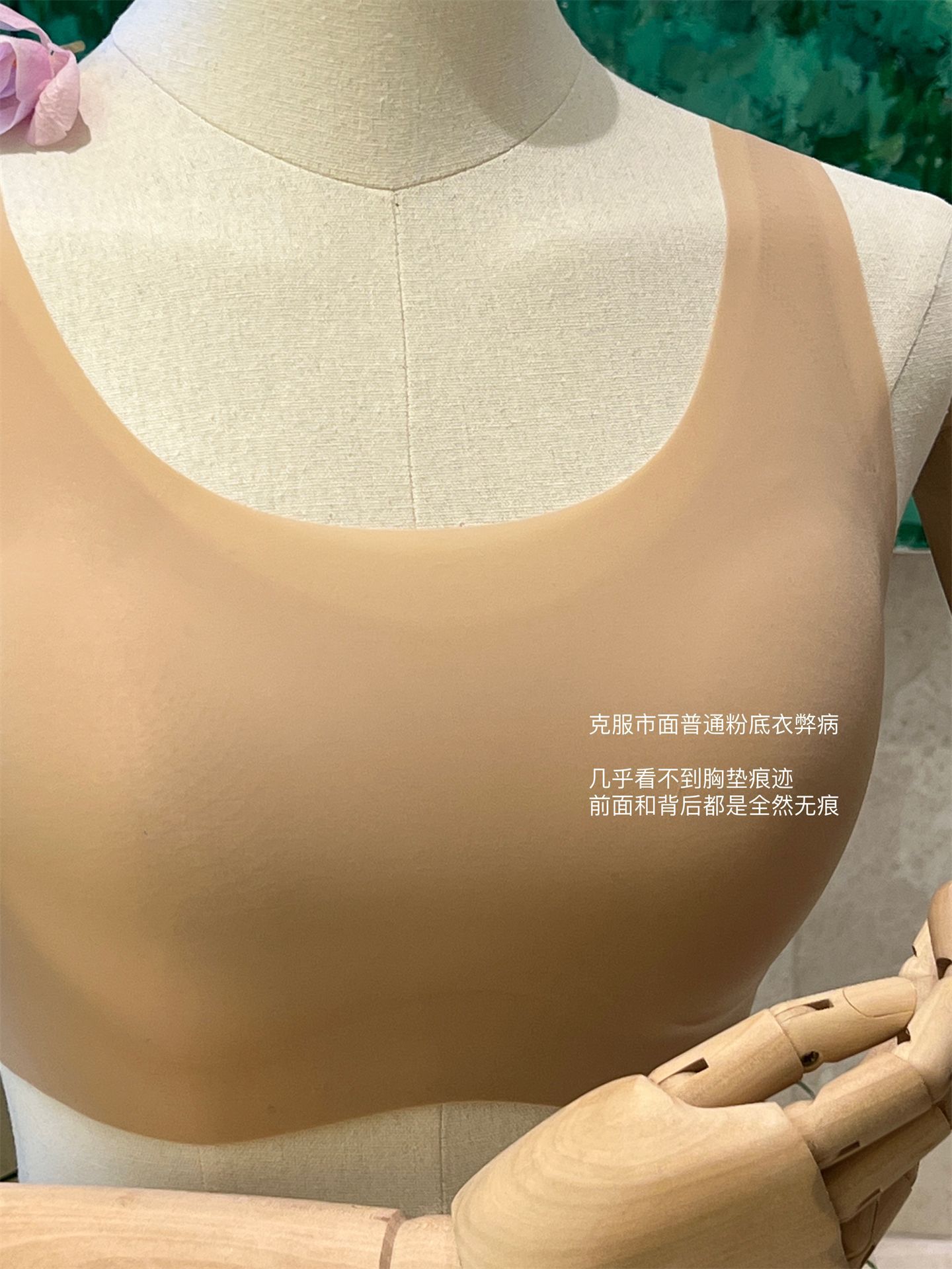 全隐形真无痕! 粉底液安心文胸背心软支撑仿生夹层内衣女肤色隐形收副乳细肩带打底