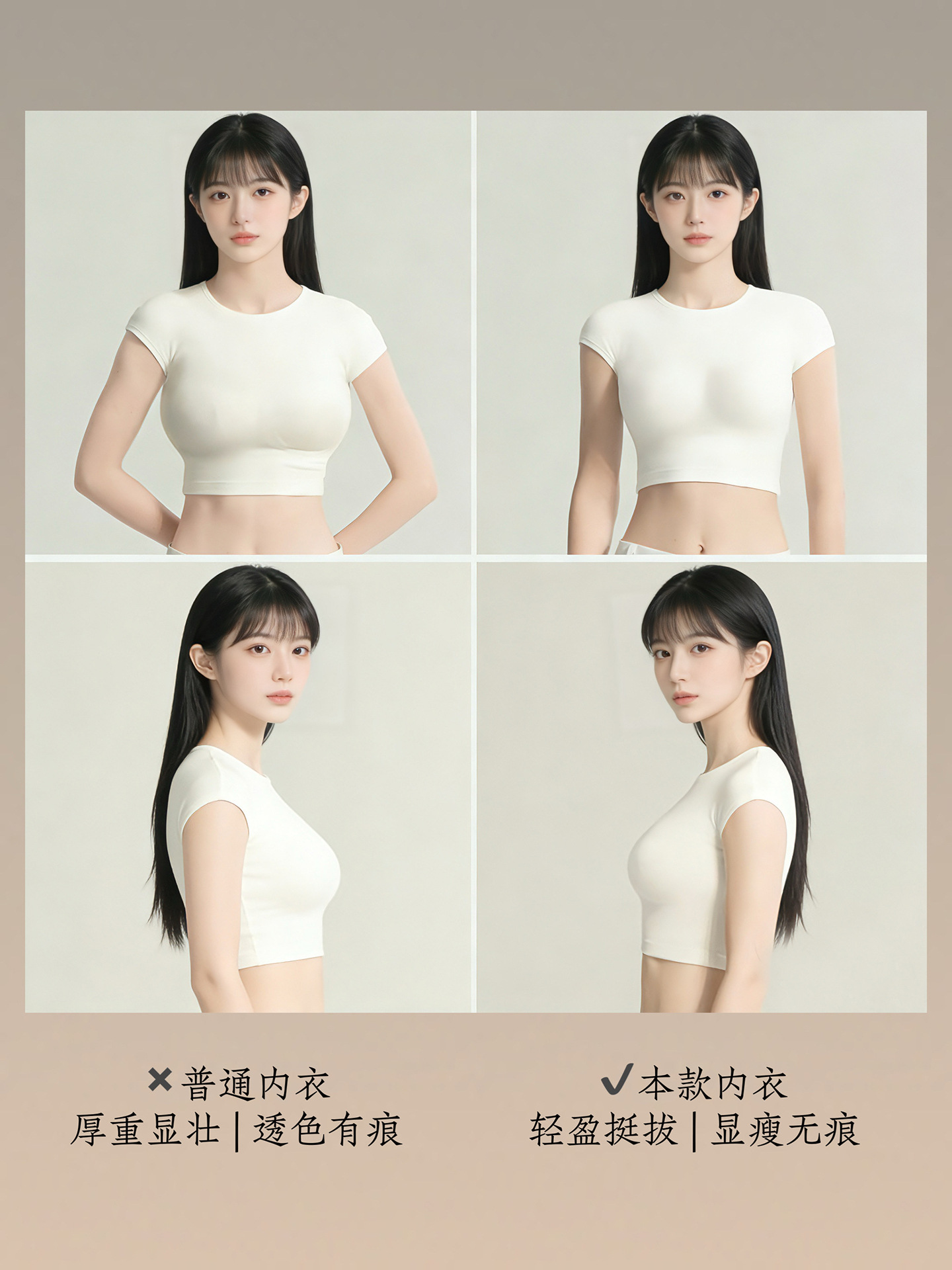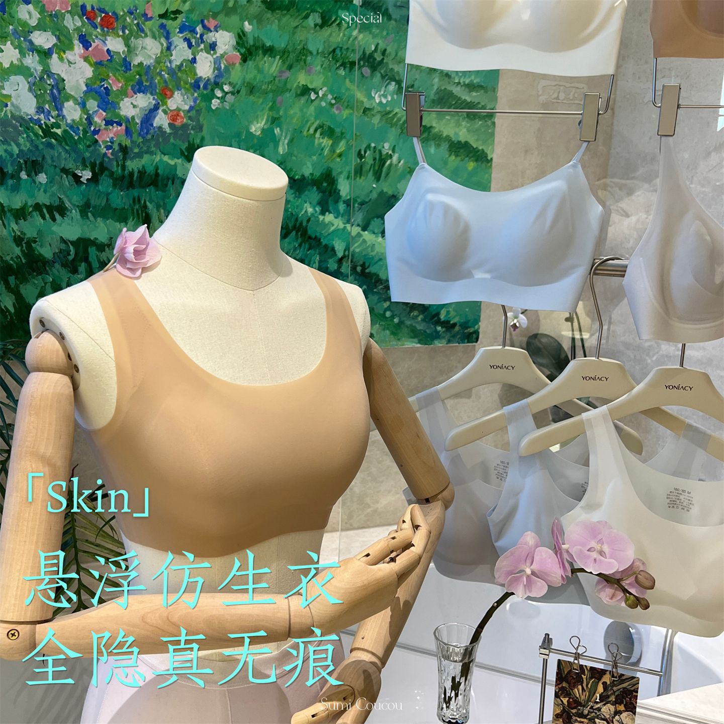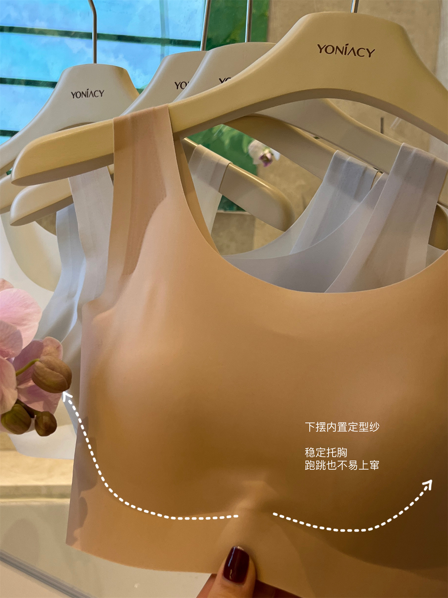 全隐形真无痕! 粉底液安心文胸背心软支撑仿生夹层内衣女肤色隐形收副乳细肩带打底