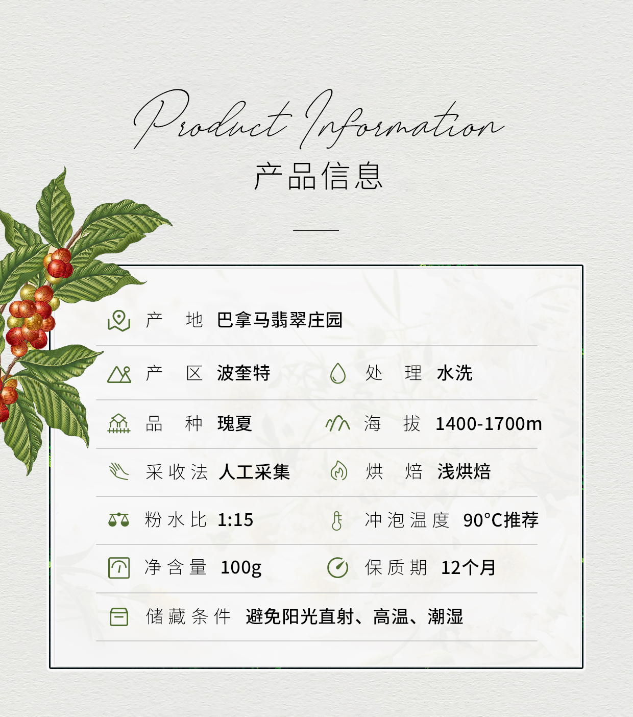 【甄选白金系列】泰摩巴拿马翡翠庄园绿标瑰夏咖啡豆-100g
