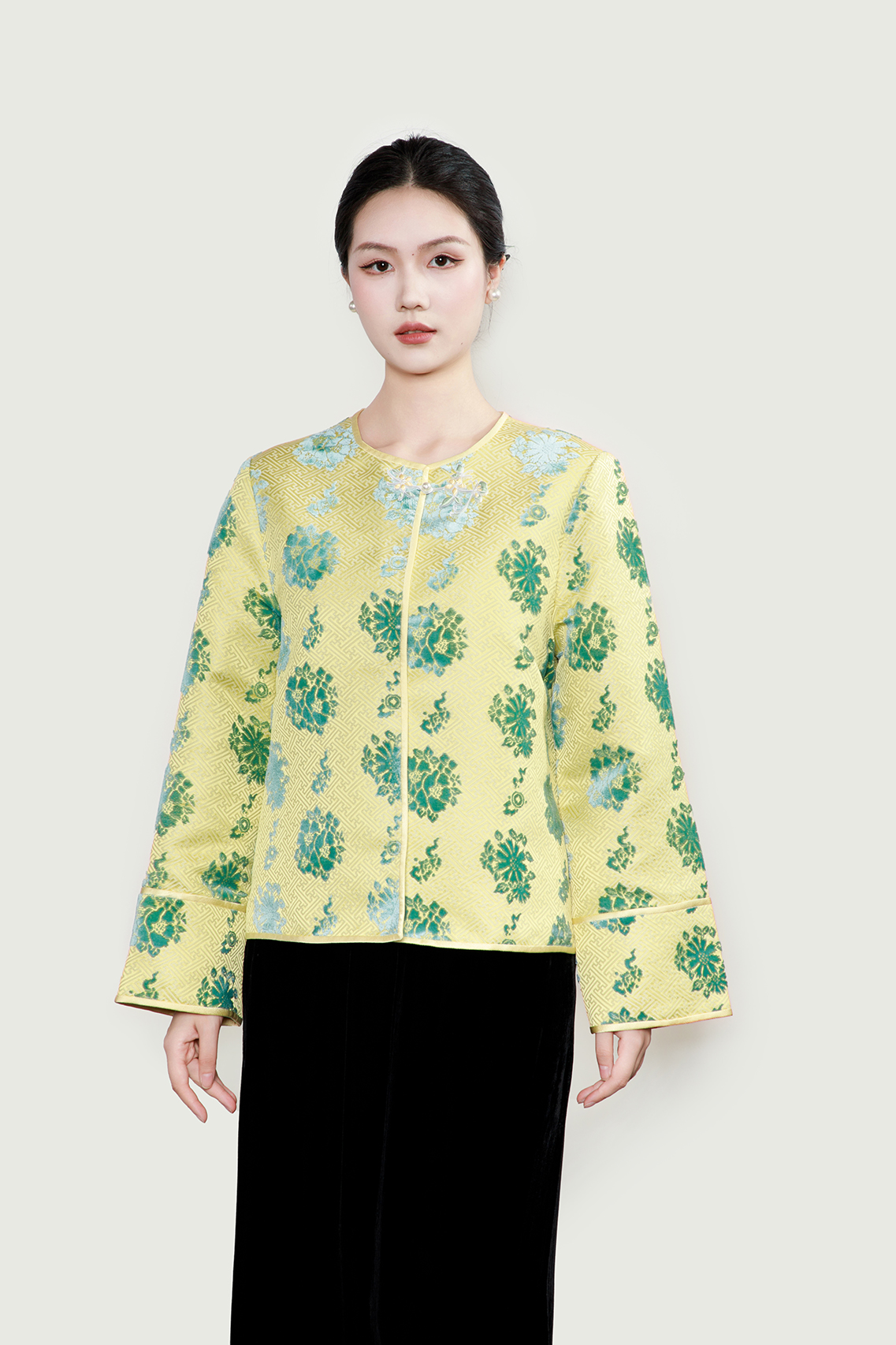 盛唐婧 |桃夭粉新中式国风提花上衣