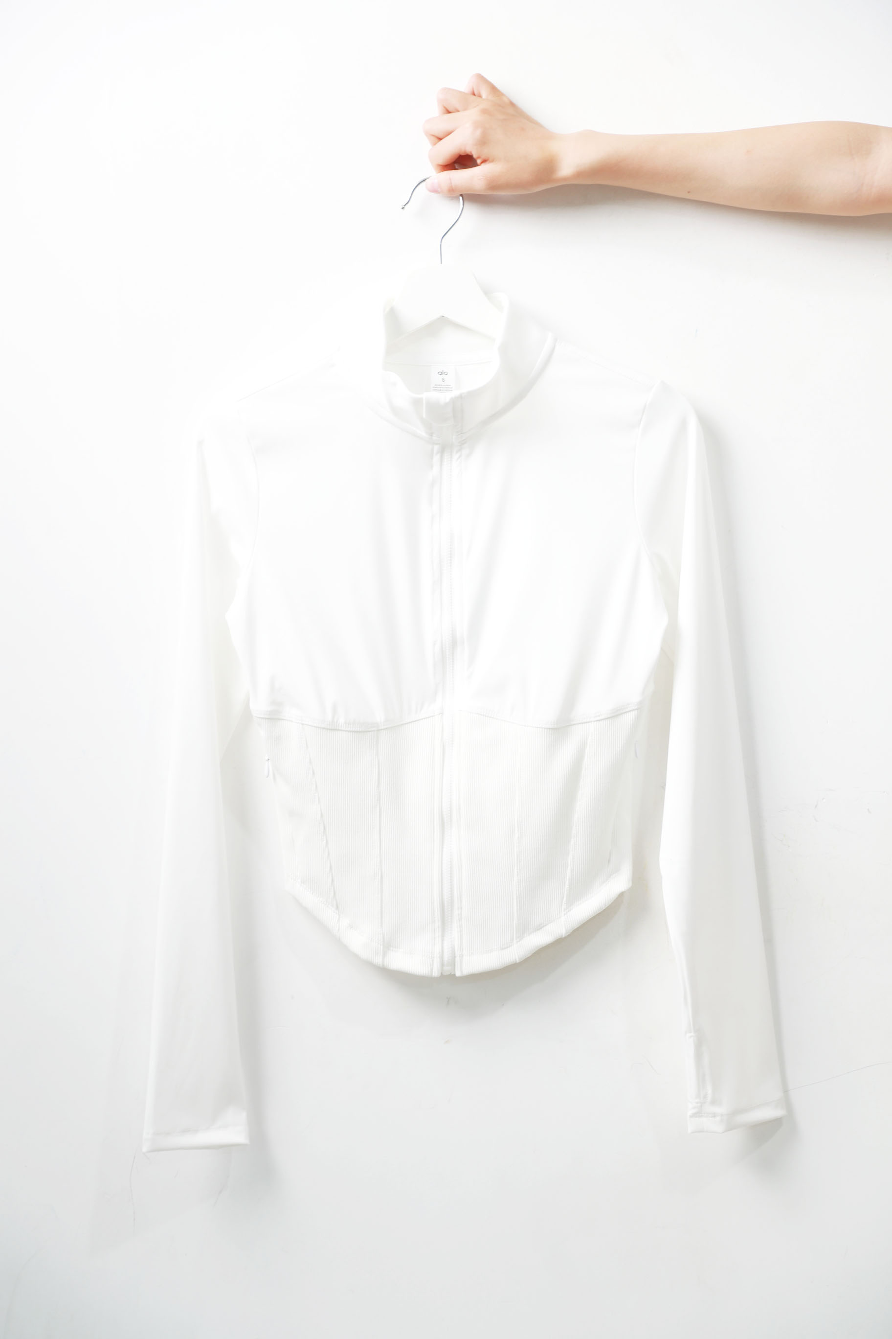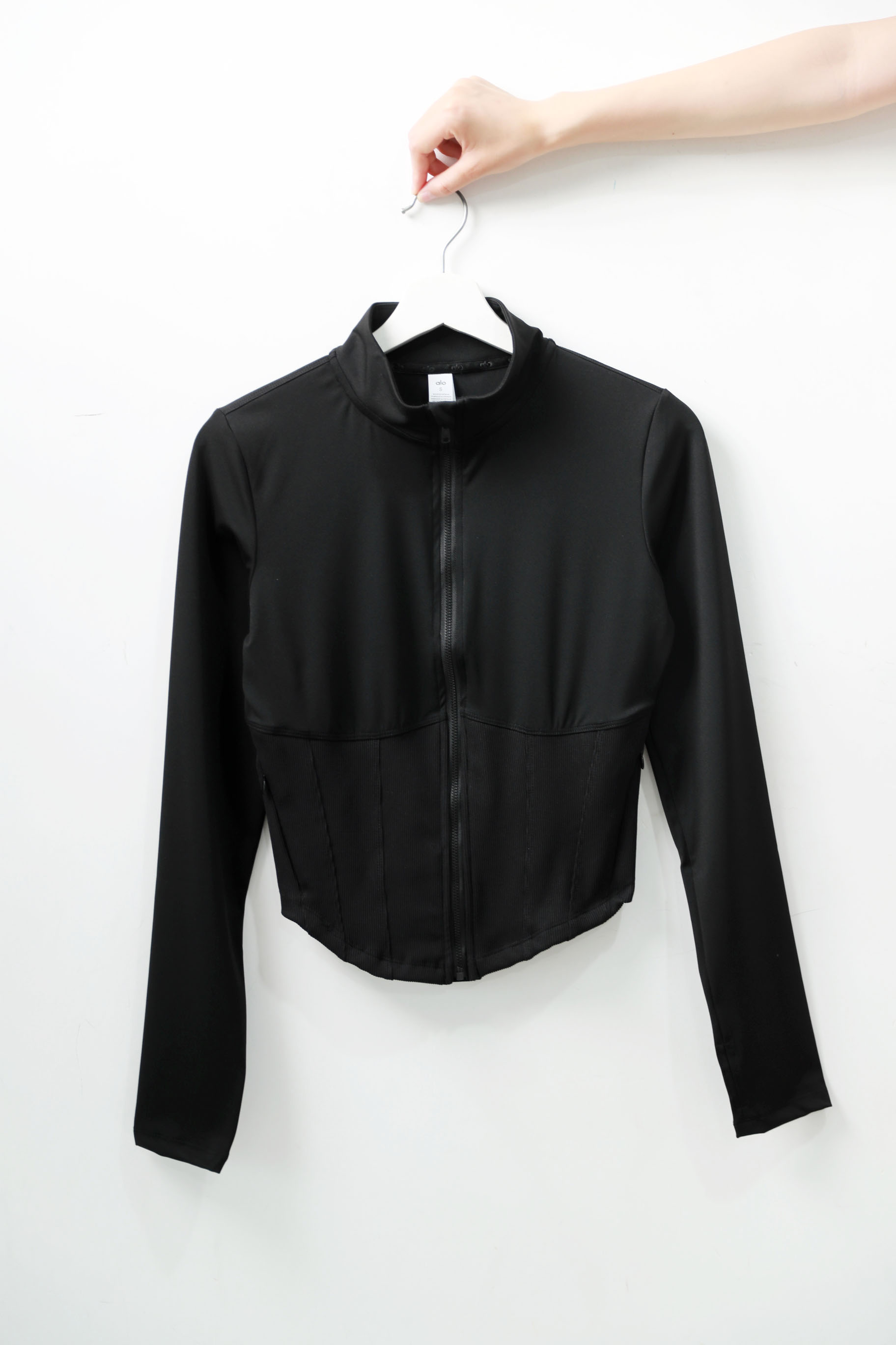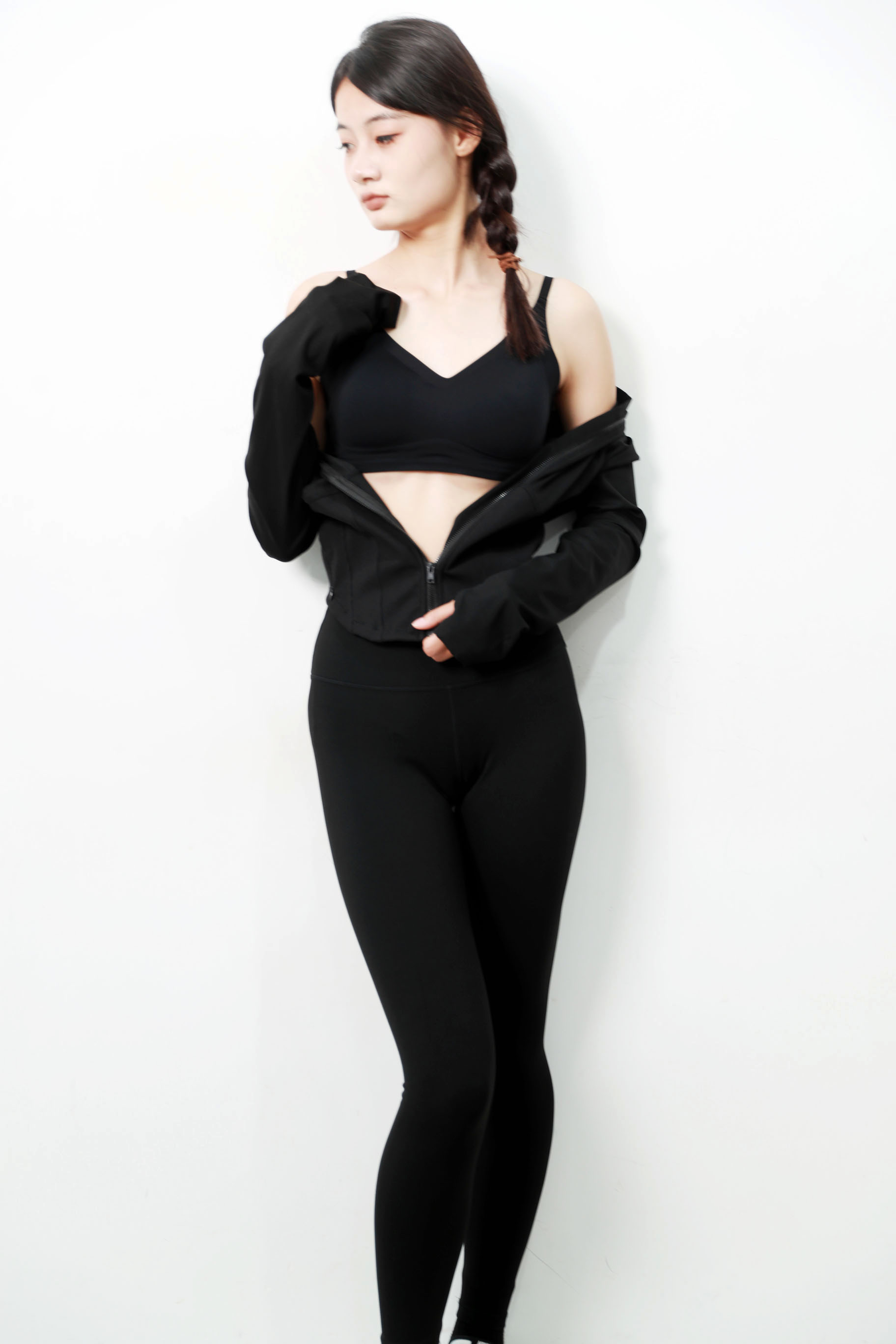 鱼骨束腰设计,全拉链+半拉链一起。很迷人很好看瑜伽上衣C081066