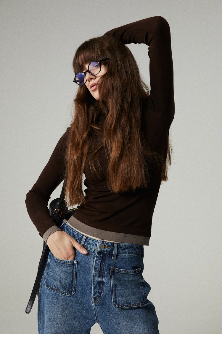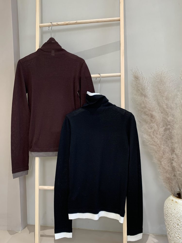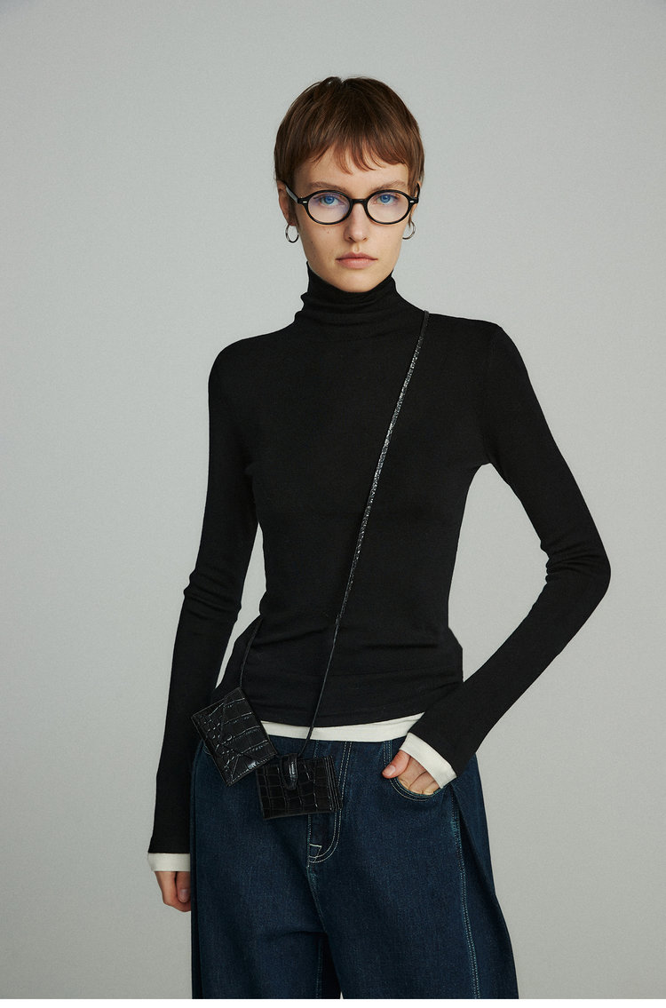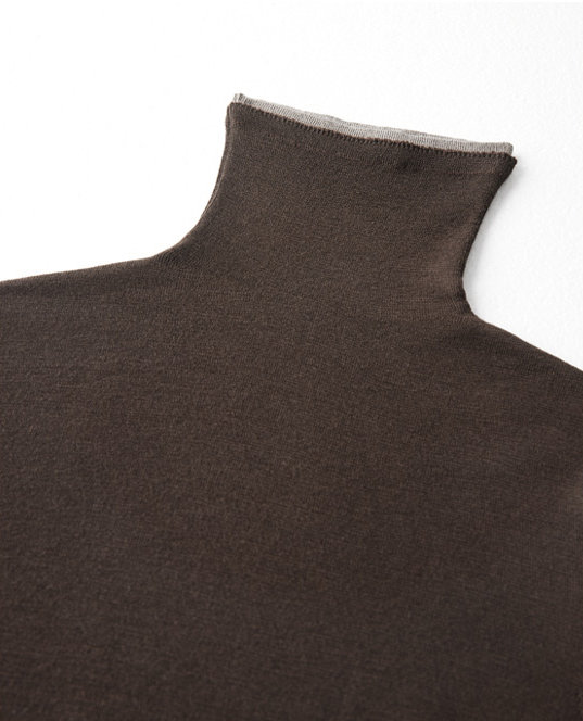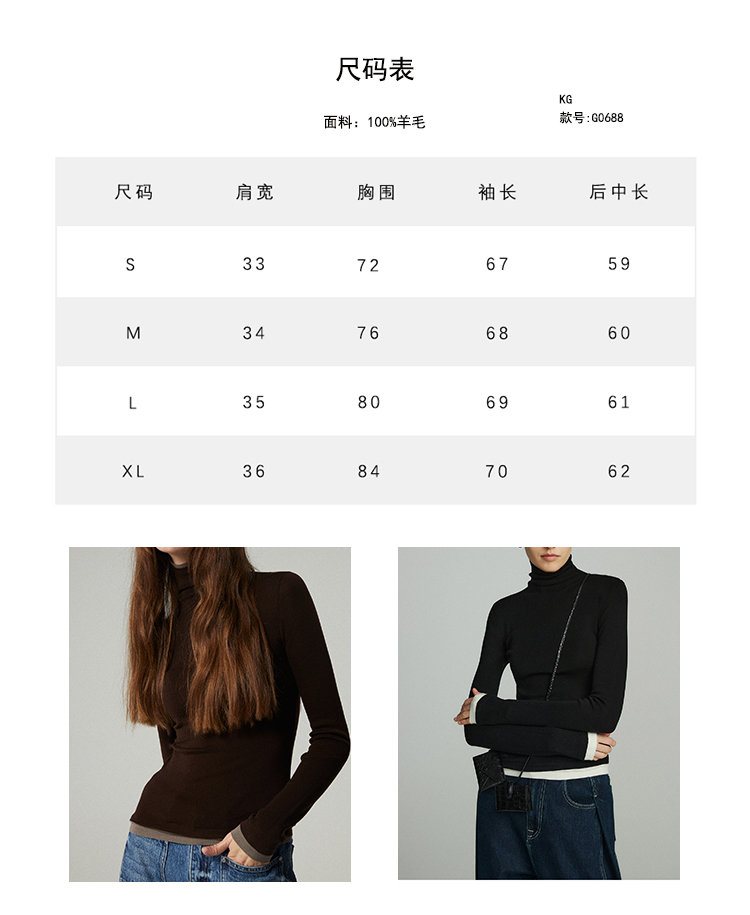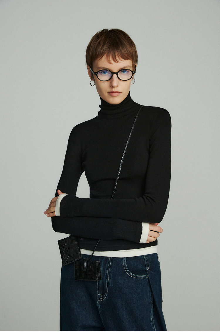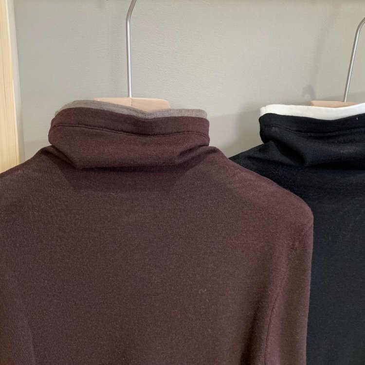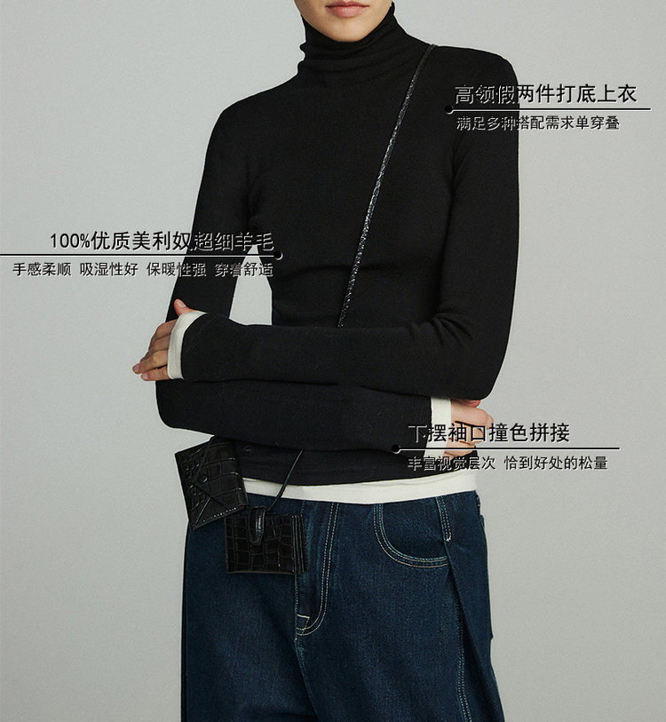 160s黄金羊毛 撞色假两件高领针织打底衫 100%超细美利奴羊毛 巴素兰防缩处理 可水洗 轻盈细腻 舒适亲肤