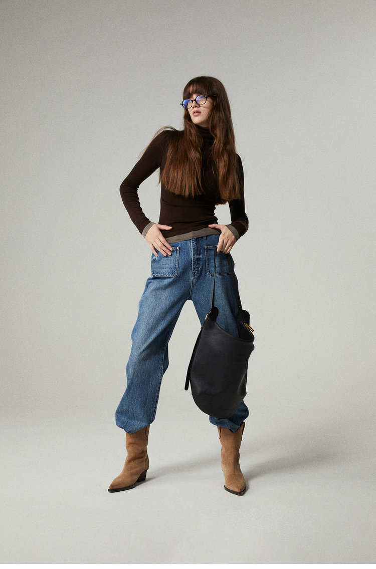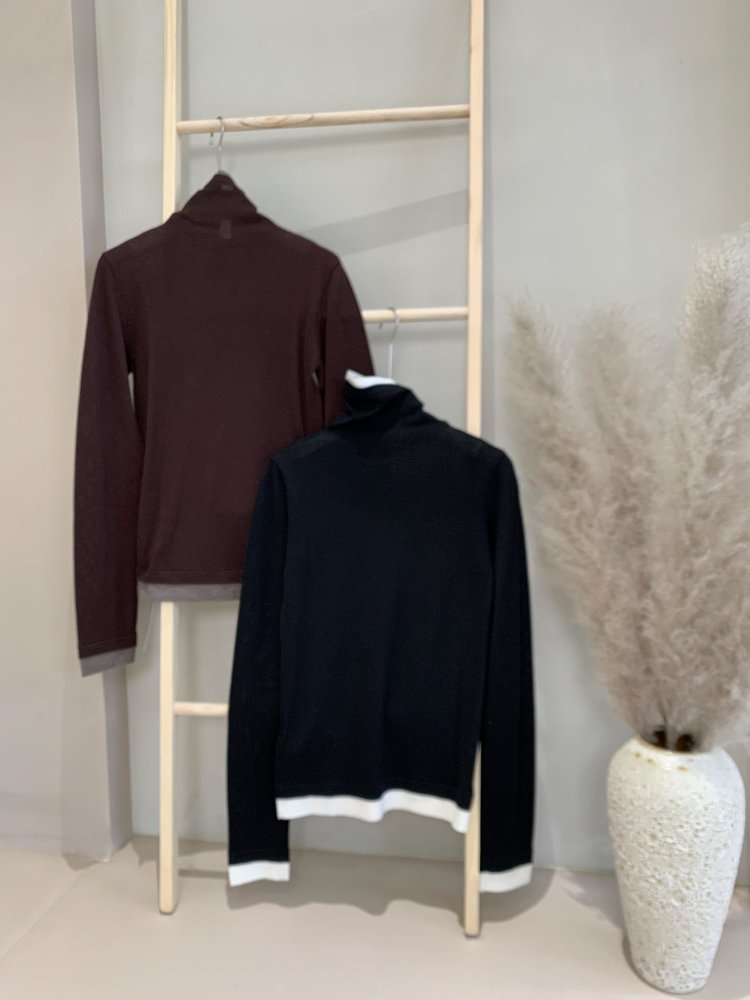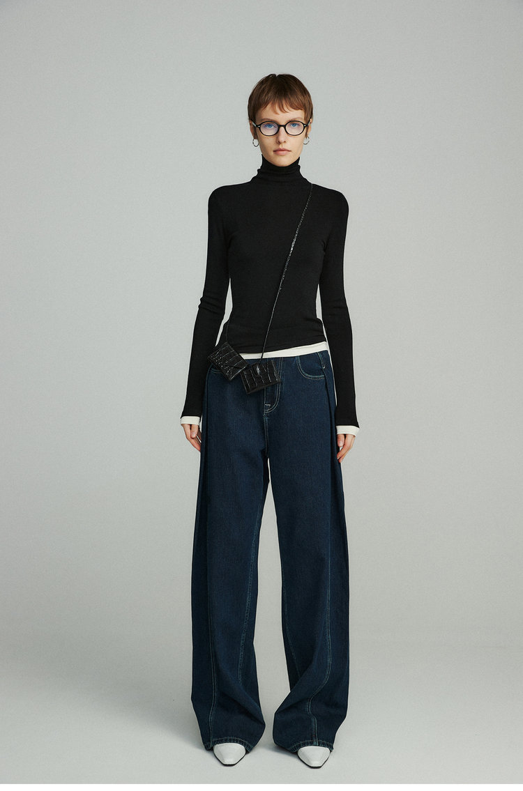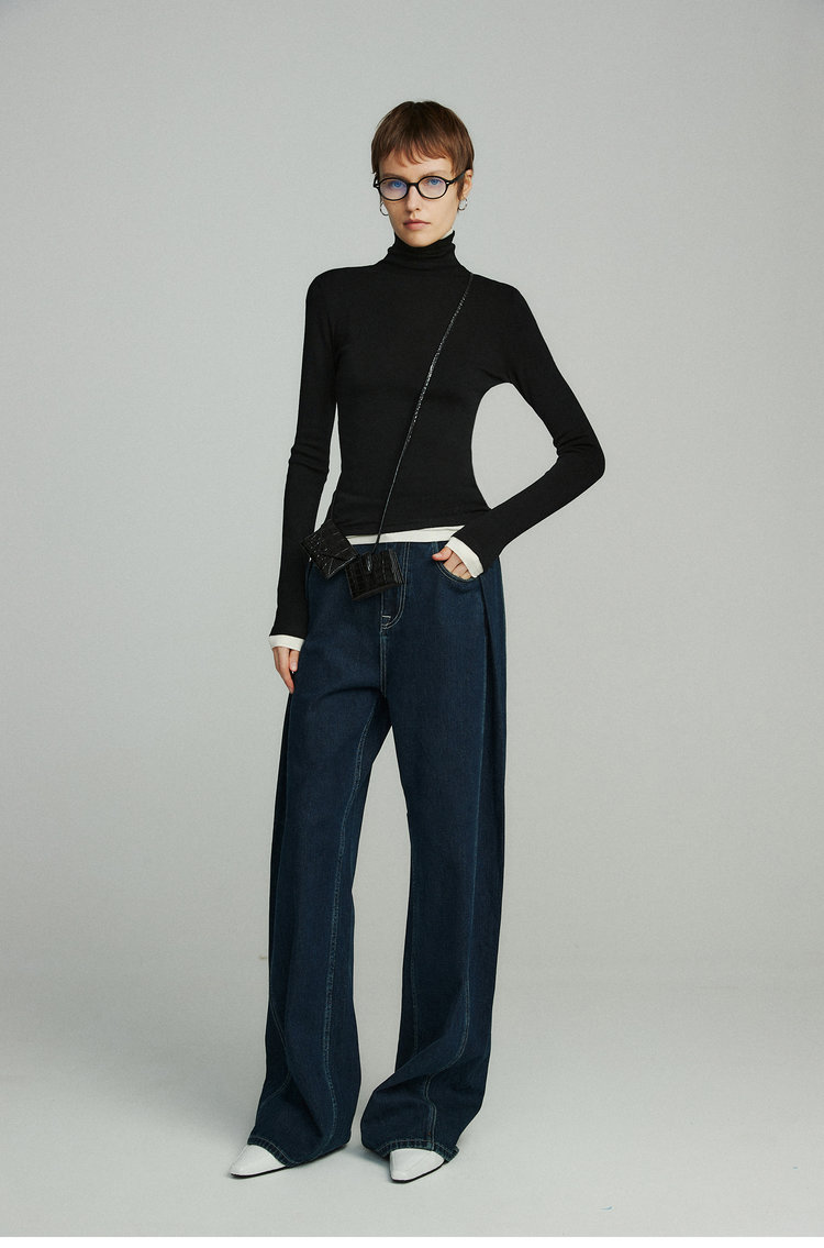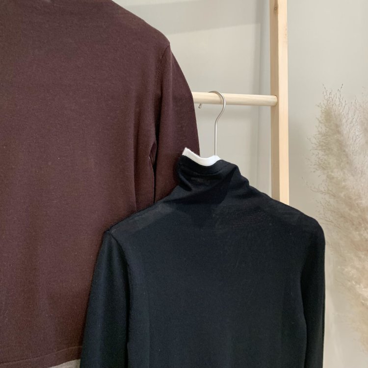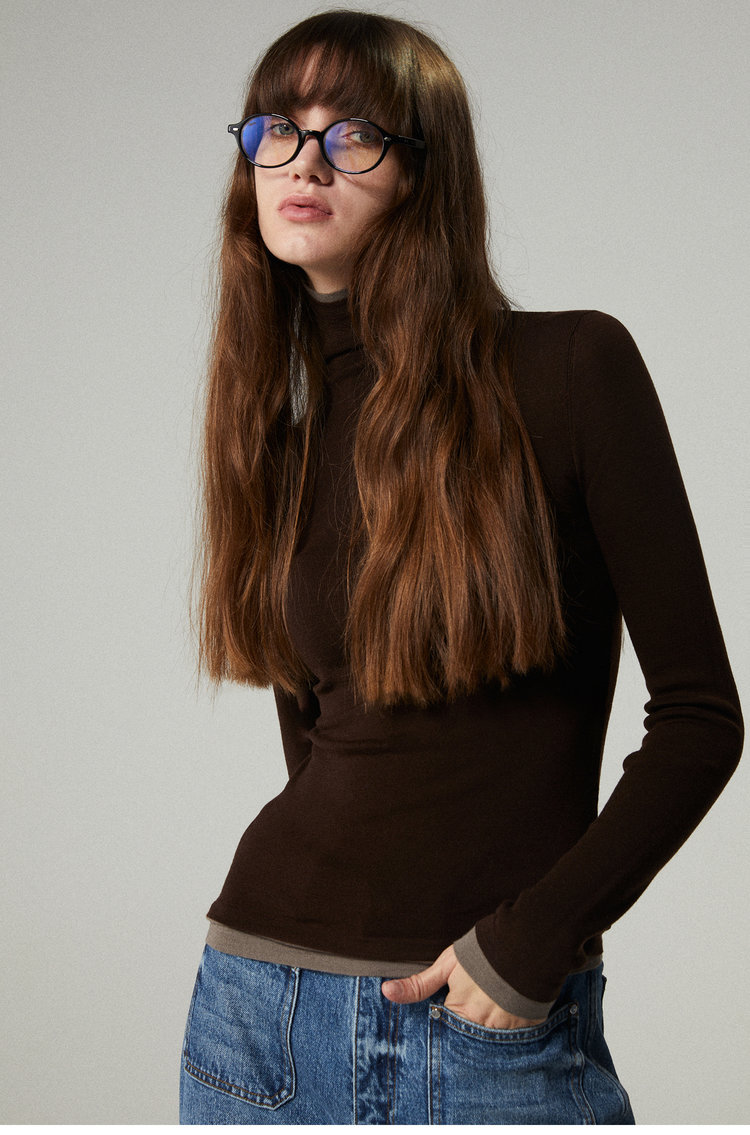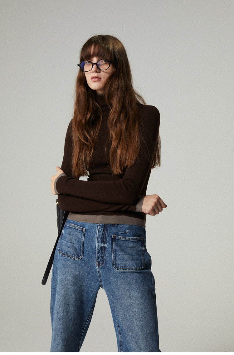 160s黄金羊毛 撞色假两件高领针织打底衫 100%超细美利奴羊毛 巴素兰防缩处理 可水洗 轻盈细腻 舒适亲肤