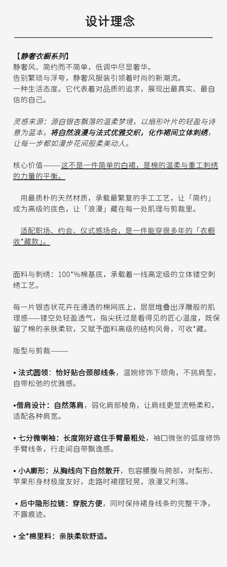 定制静奢风「银杏绣影」“法式浪漫”纯净白法式刺绣A摆连衣裙2601002