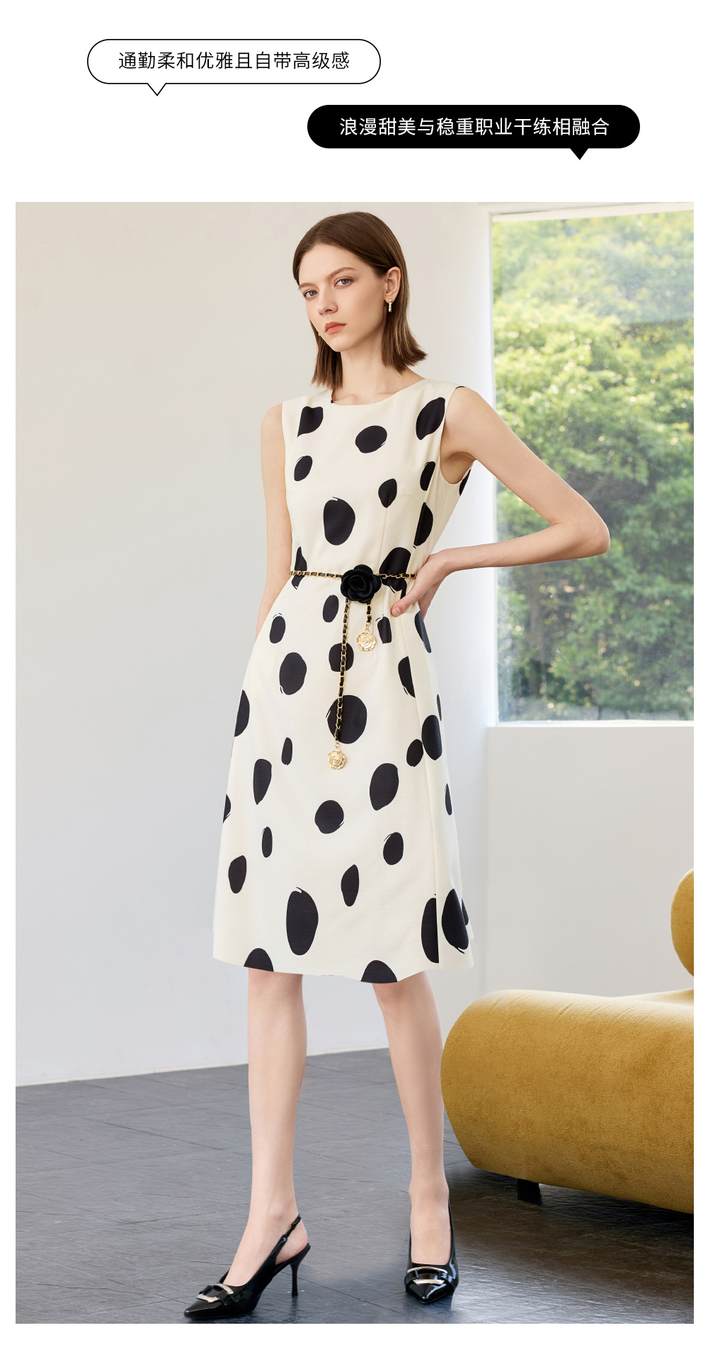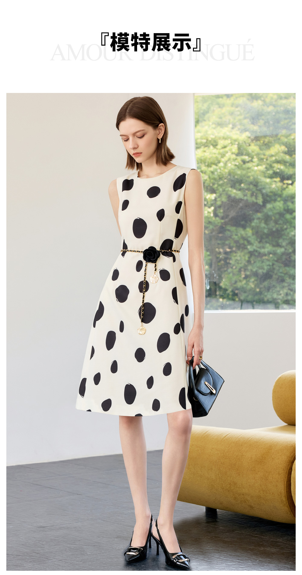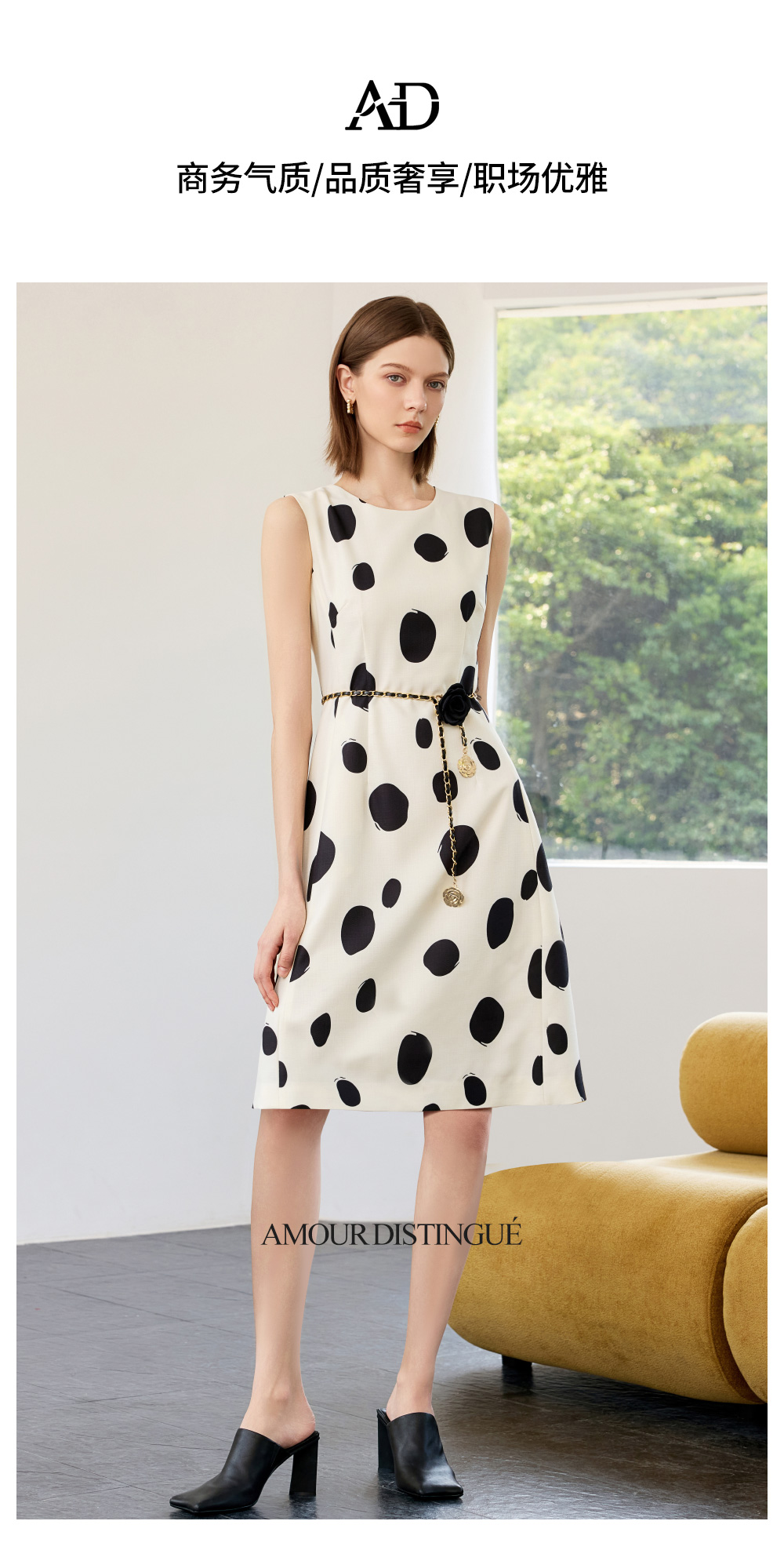 AD高端气质连衣裙女2025新款夏季波点无袖背心裙