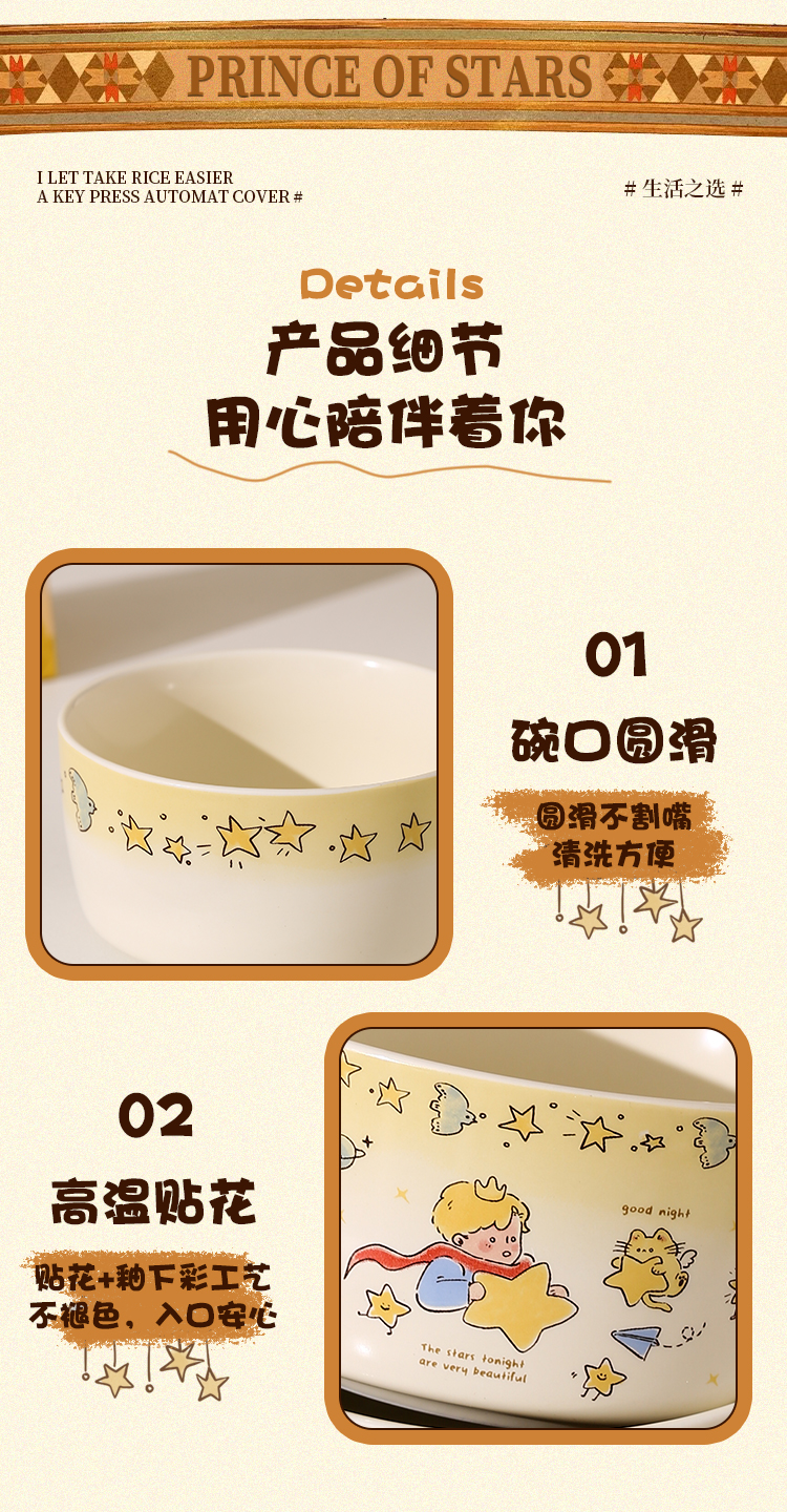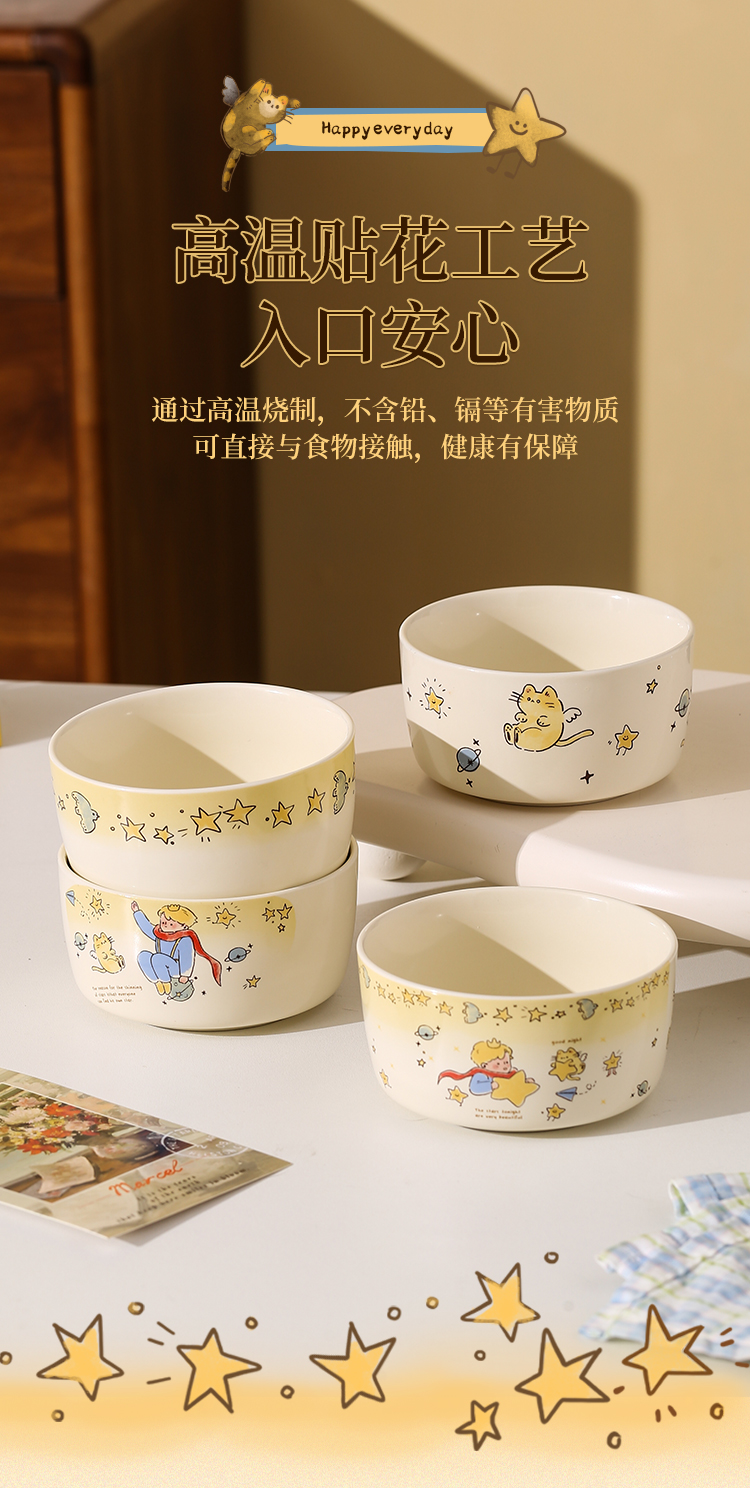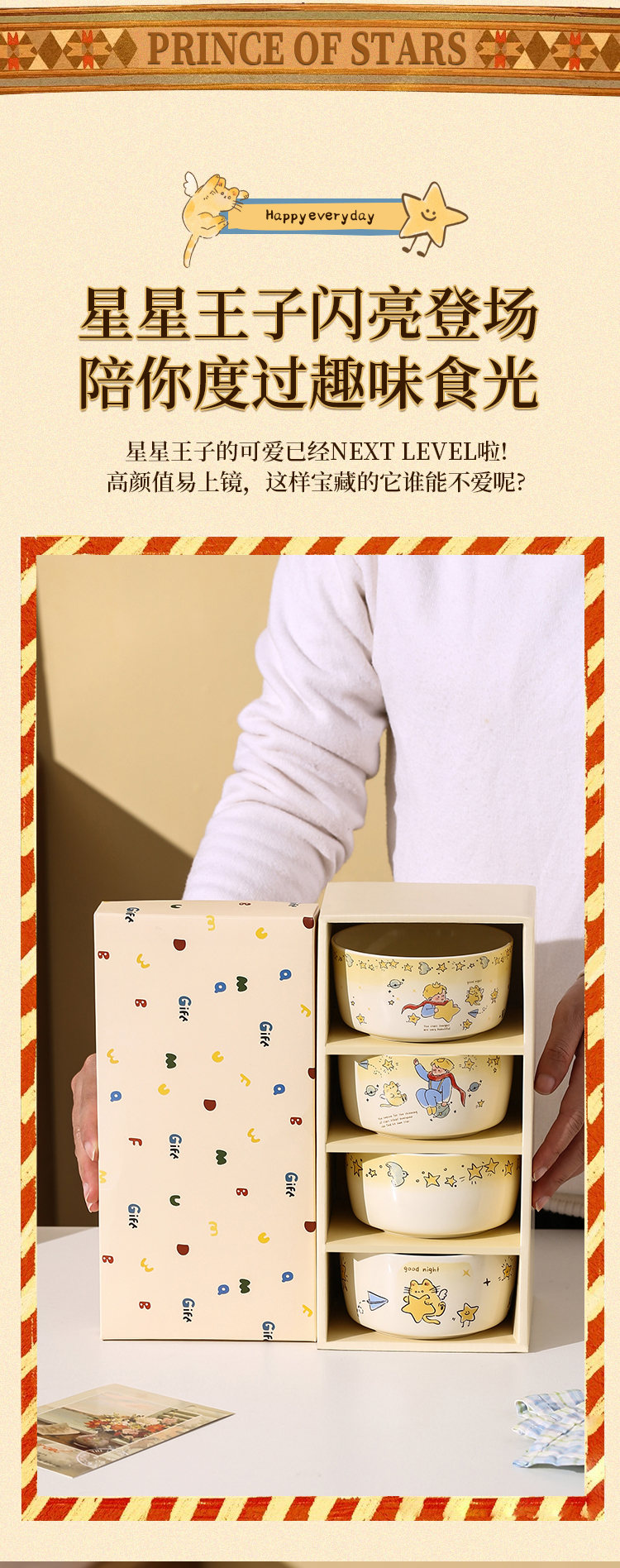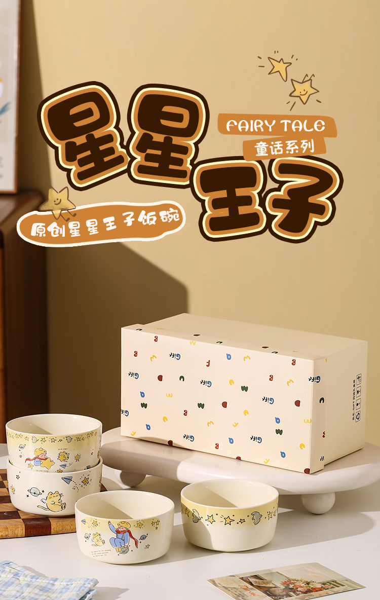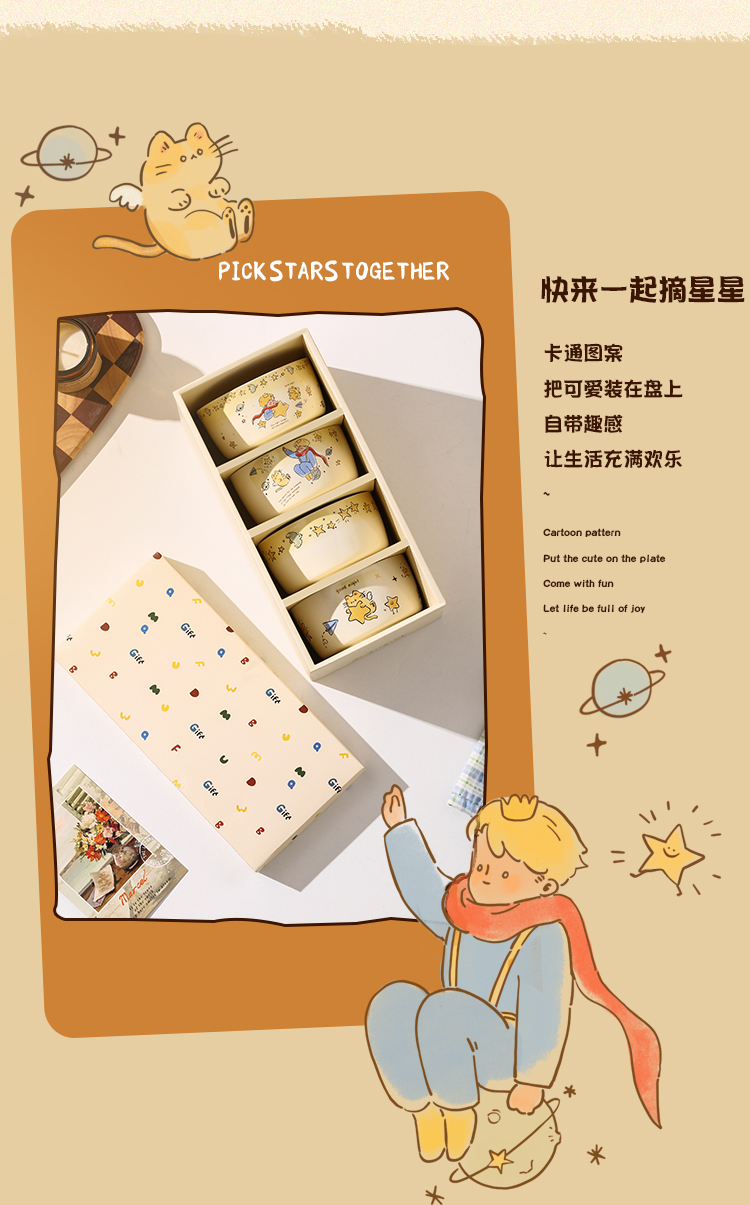 【星星王子四碗彩盒装】治愈系网红陶瓷餐具高颜值家用吃饭碗儿童成人送礼套装
