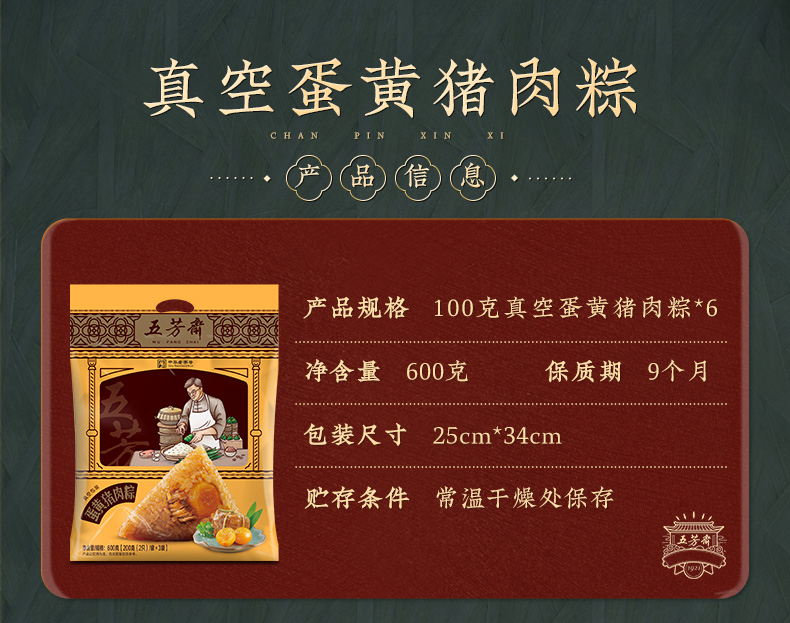 五芳斋 真空蛋黄猪肉粽 咸香流油 嘉兴老字号 100g*6