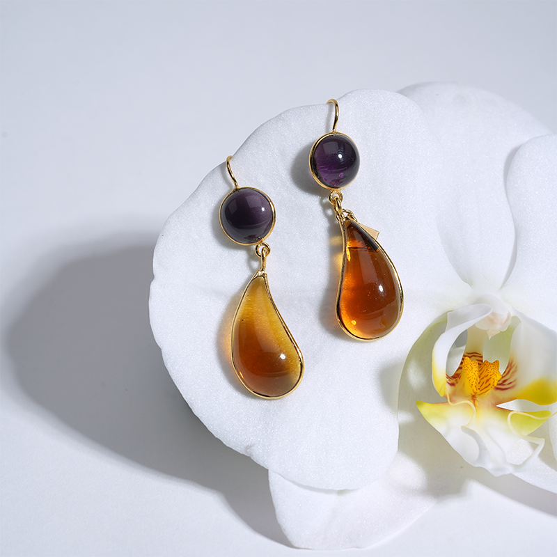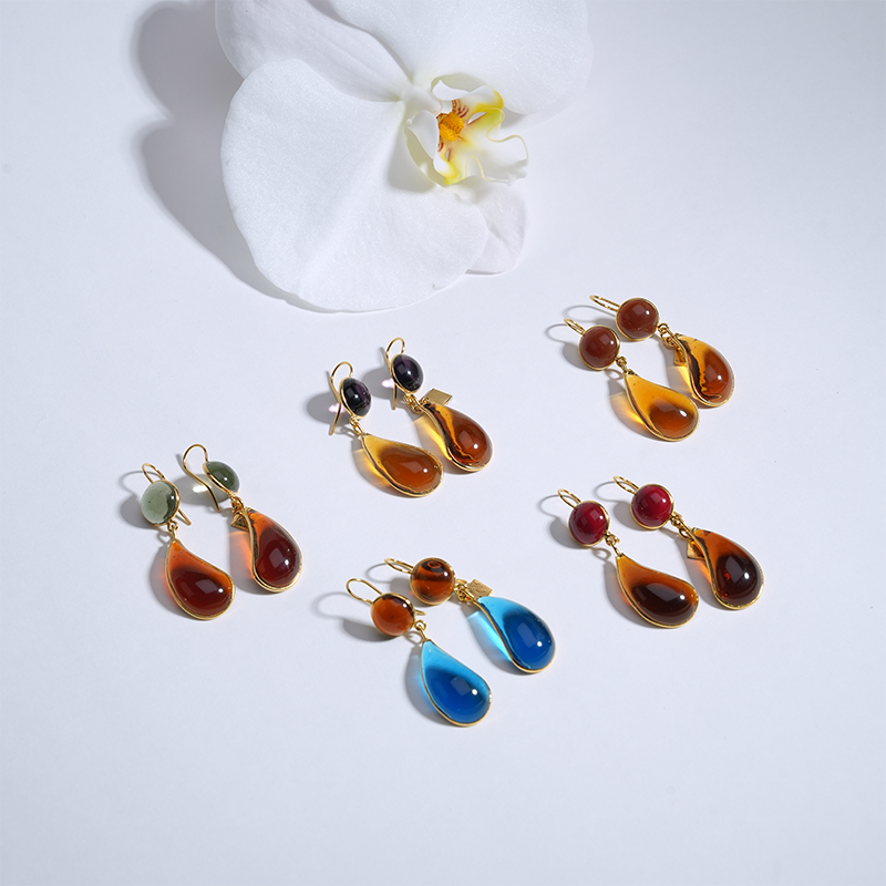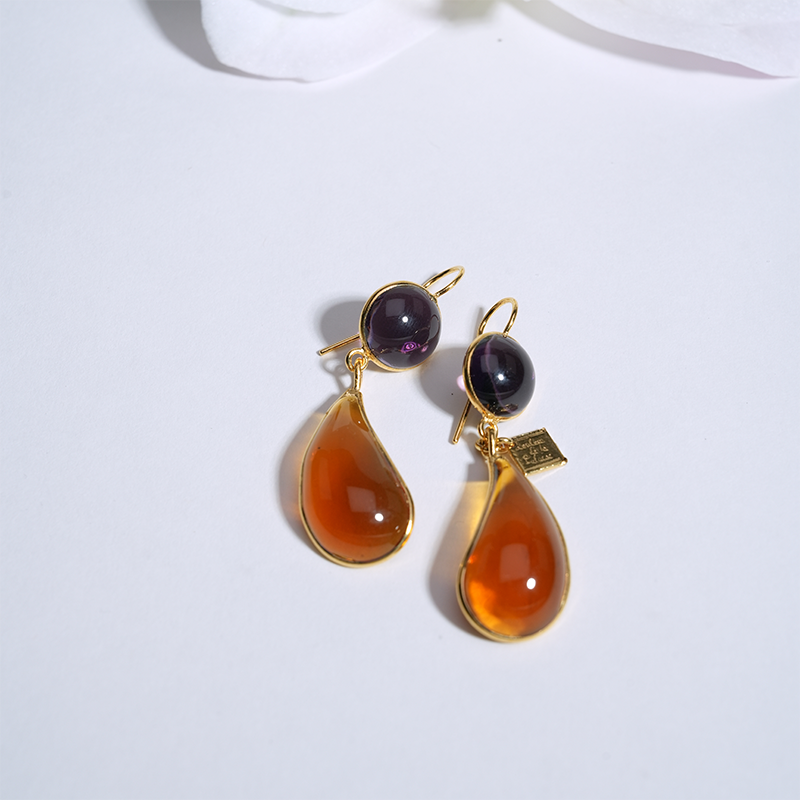 北京仓|Loulou de la Falaise-LARMES-葡萄琥珀 双色 耳环[法国设计师]