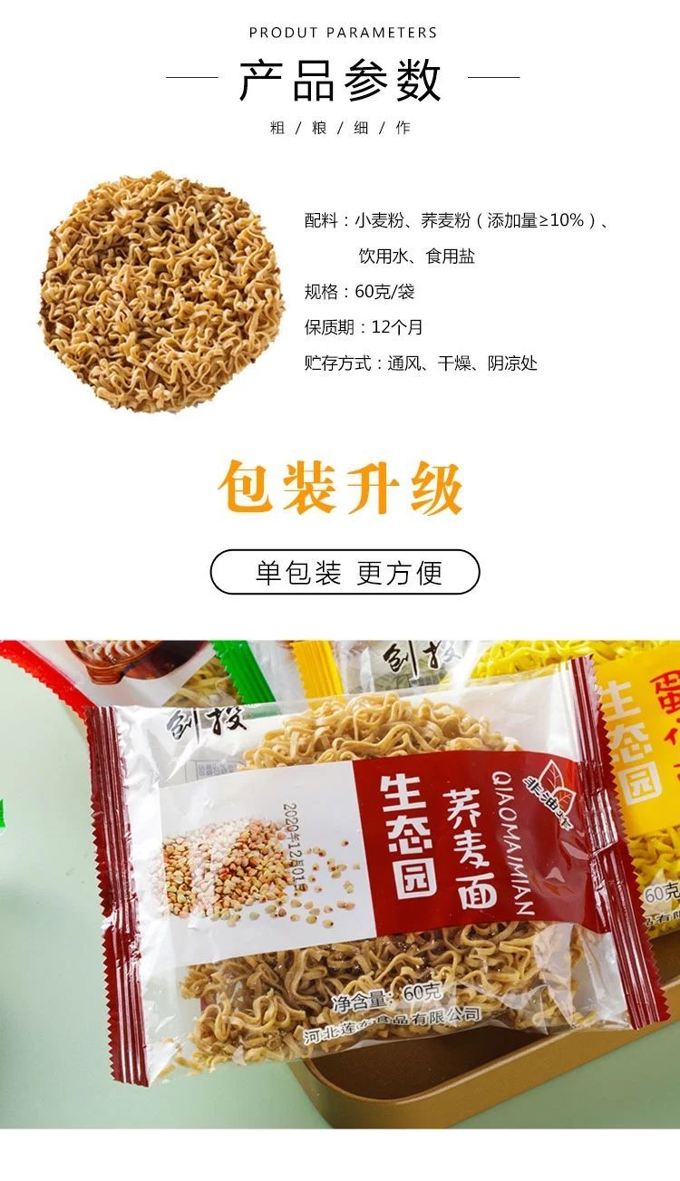 粗粮荞麦方便面条非油炸减免煮无糖精粗粮代餐速食整箱批发