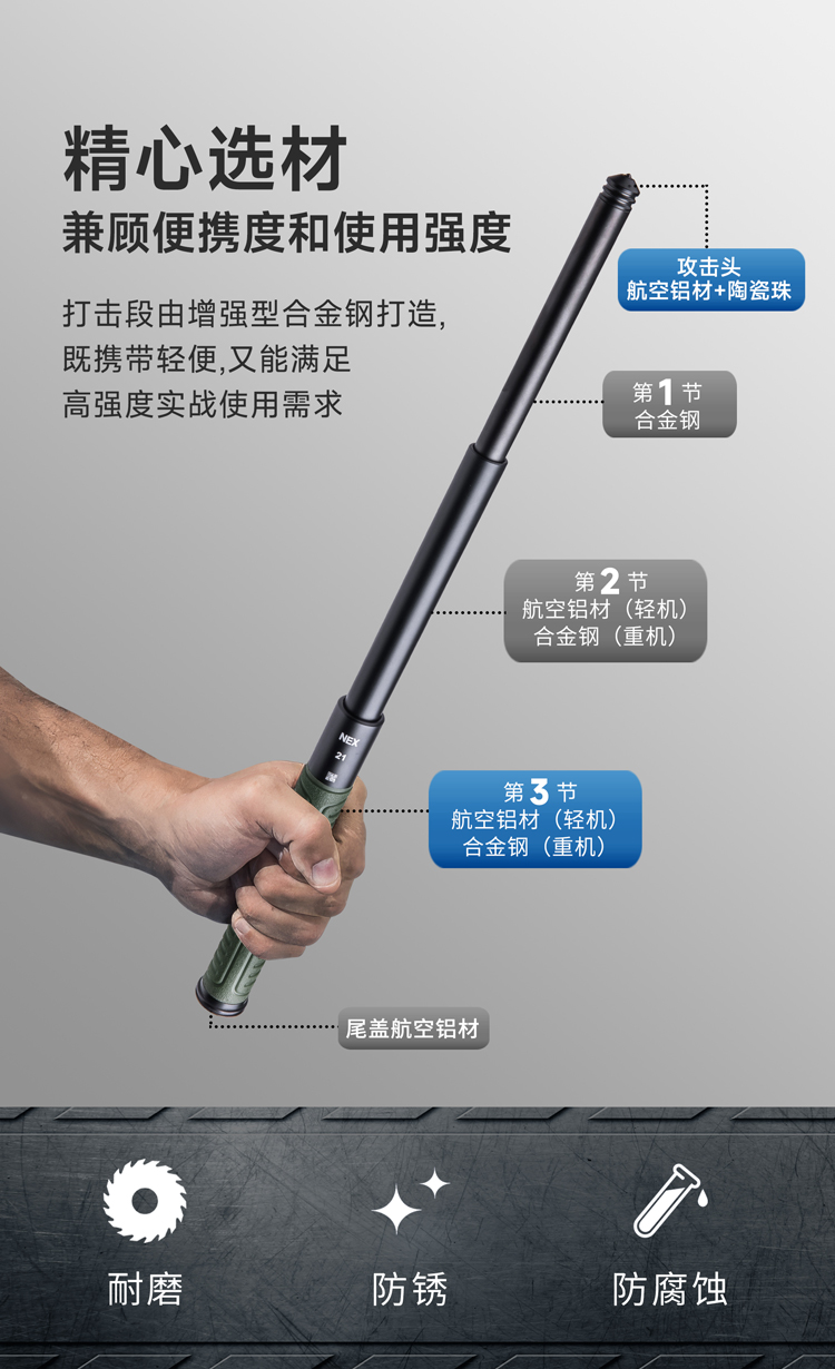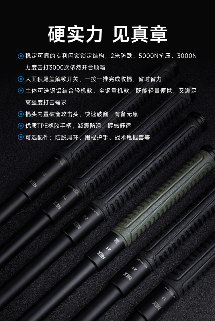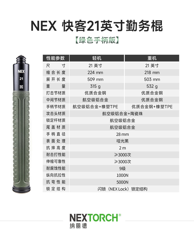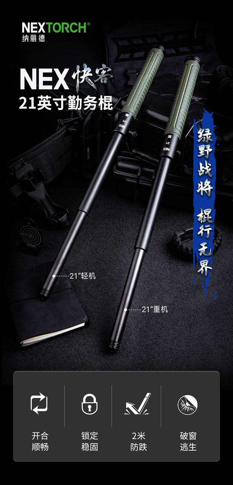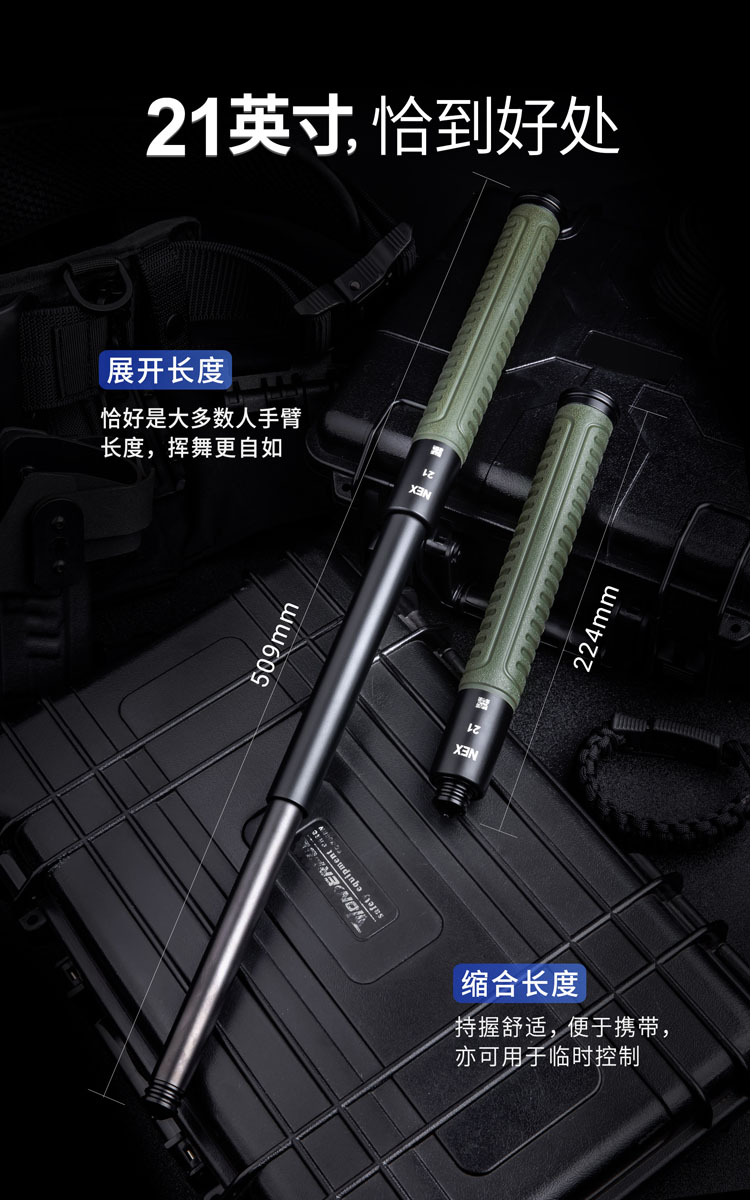 21寸勤务棍绿色手柄甩棍防卫工具机械棍战术装备