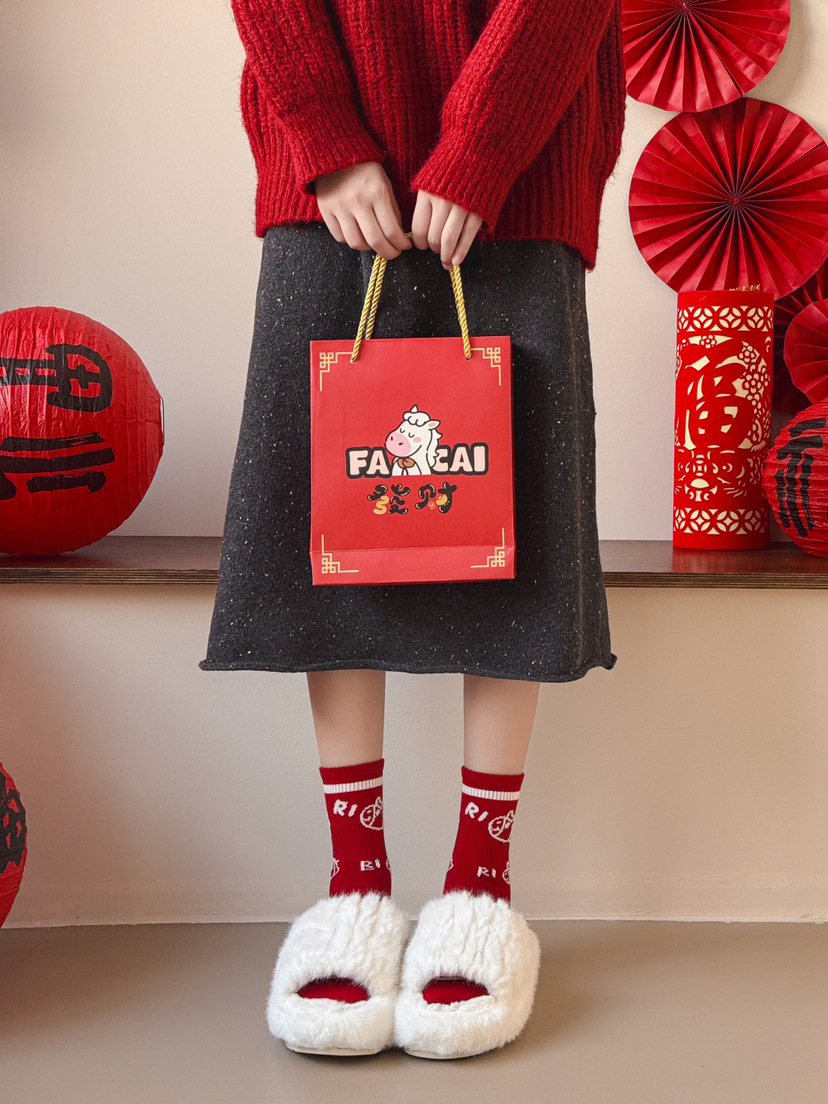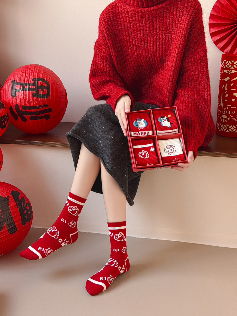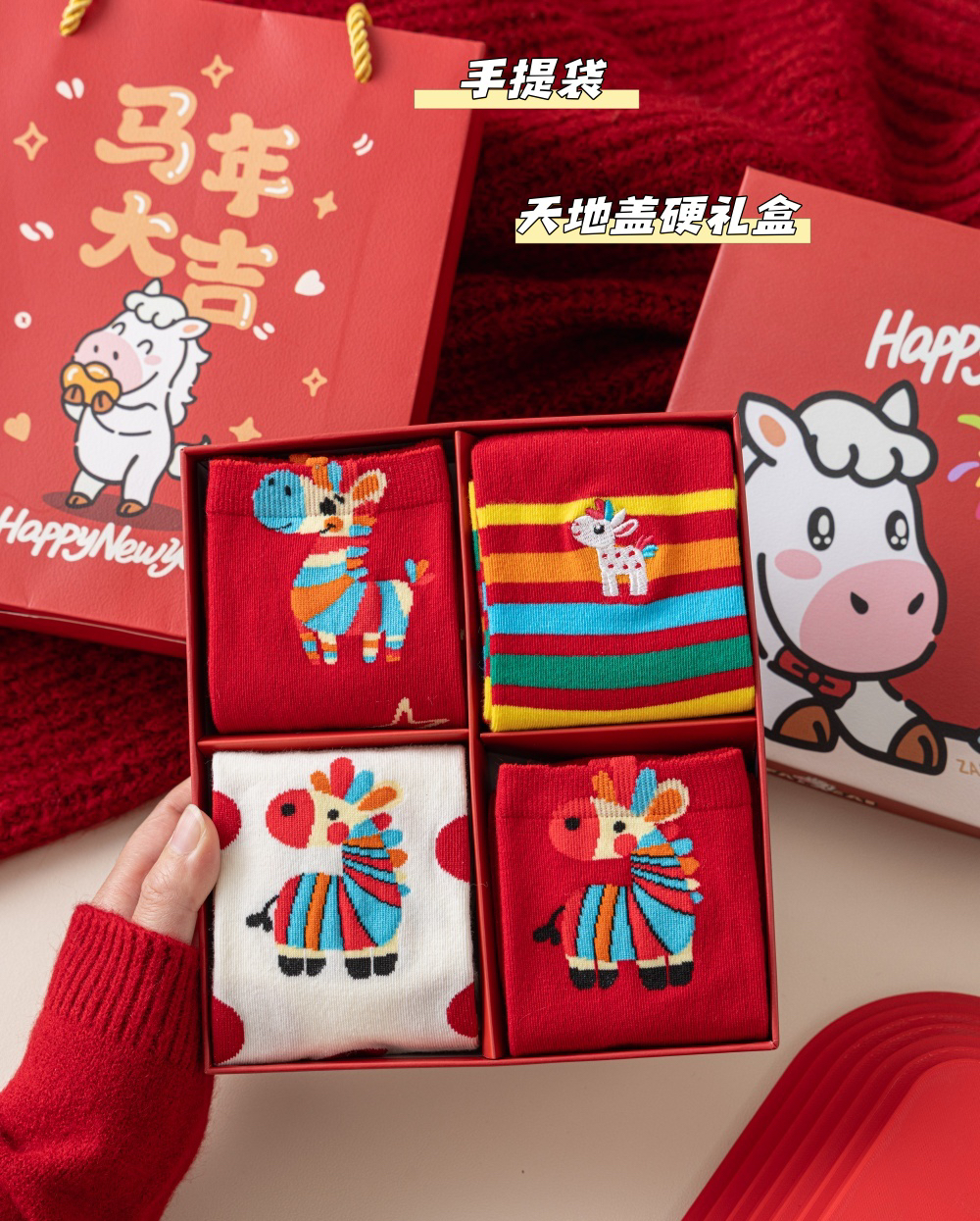 4双装礼盒礼袋!新年本命年马年大红袜子 优质棉袜 超可爱小马图案 新年送人必备单品