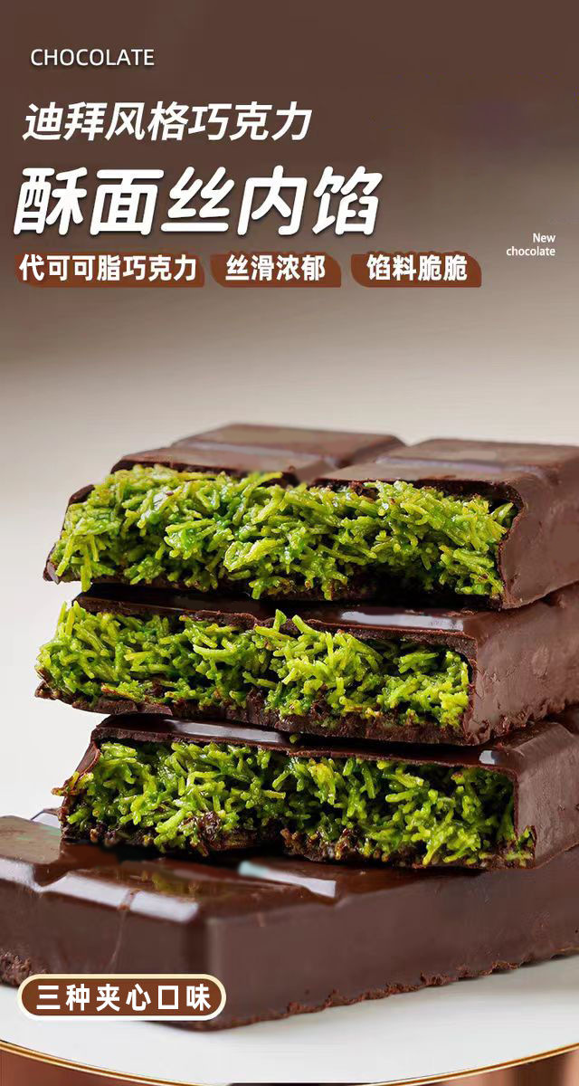 迪拜风味巧克力开心果夹心巧克力千丝酥成品纯网红面丝代可可脂