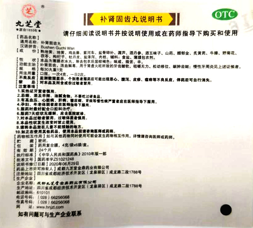 功能主治补肾固齿,活血解毒。用于肾虚火旺所致的牙齿酸软、咀嚼无力、松动移位、龈肿齿衄;慢性牙周