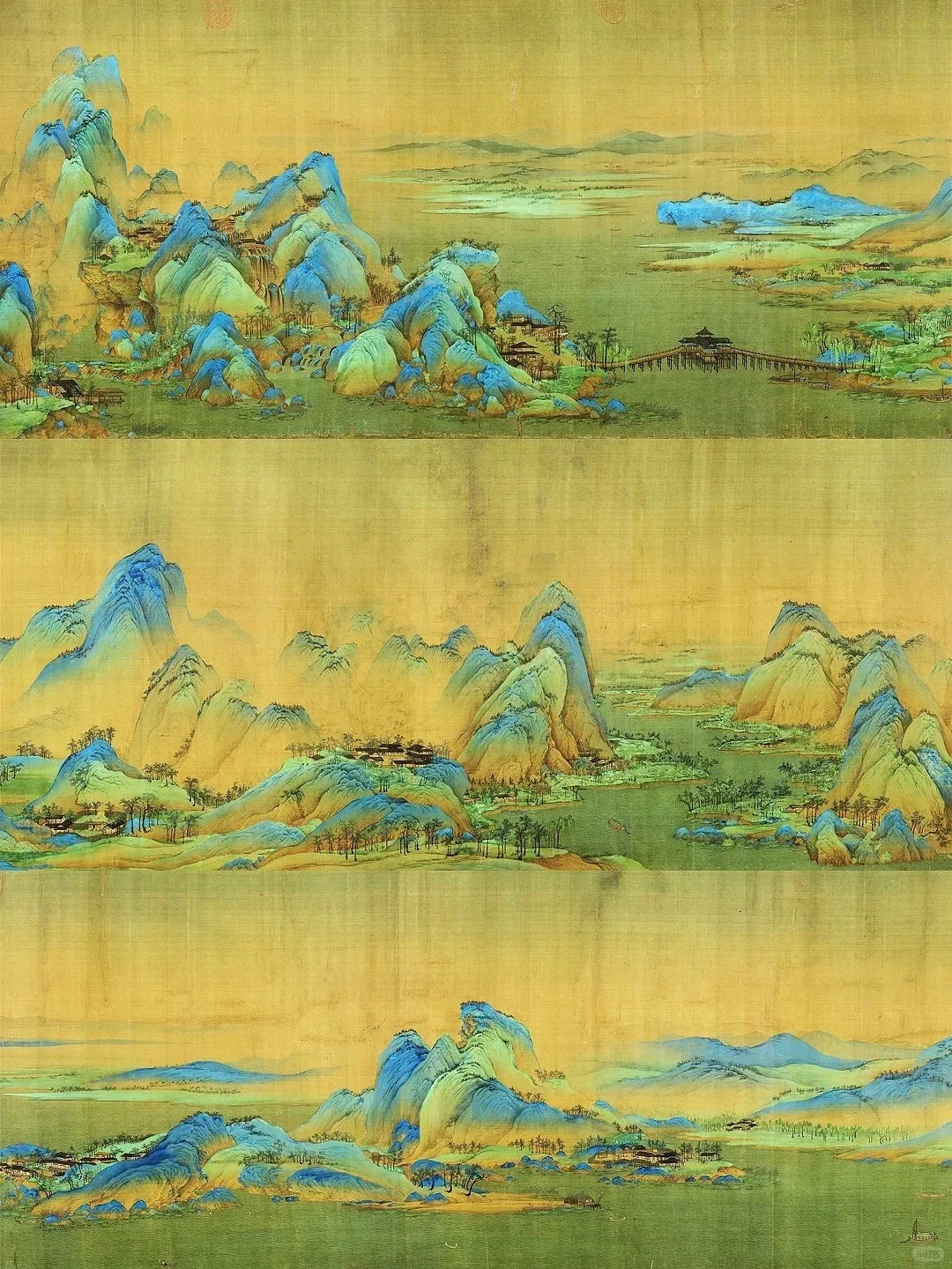 ⛰千里江山从绢本长卷中流淌而出,化作若隐若现的层峦叠嶂,蜿蜒的江河似在诉说千年前的渔舟唱晚...