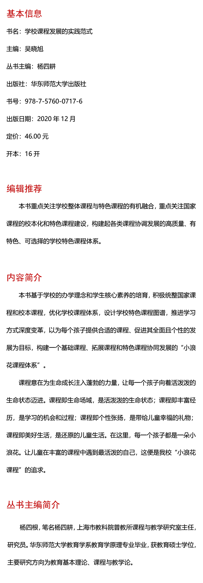 学校课程发展的实践范式 特色课程建设丛书 吴晓旭主编 杨四耕丛书主编 正版 华东师范大学出版社