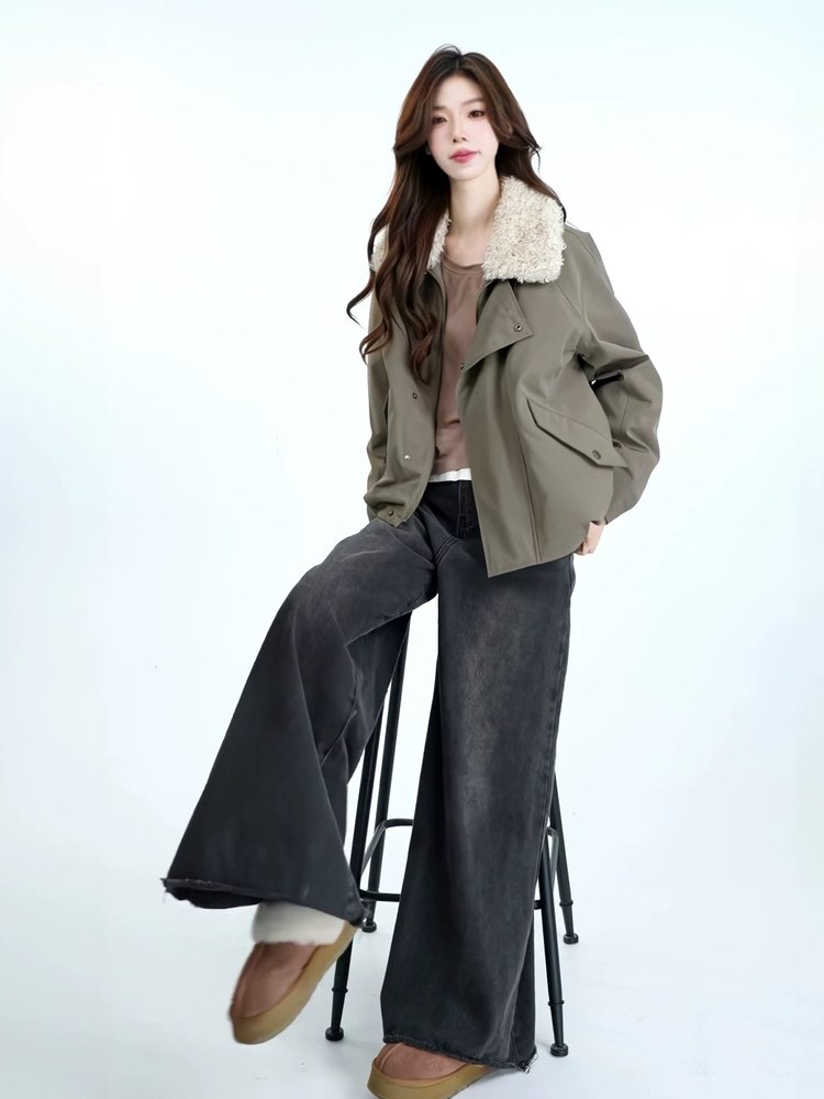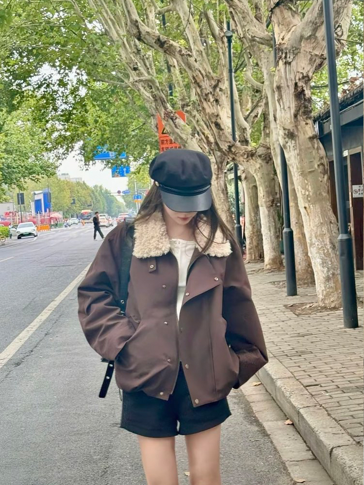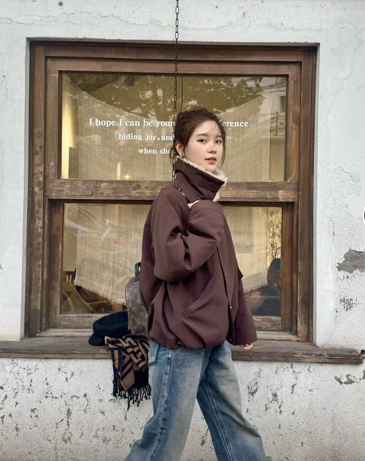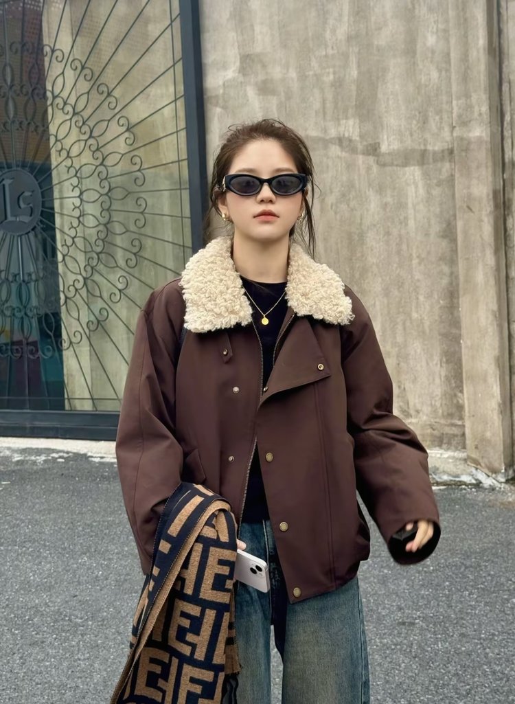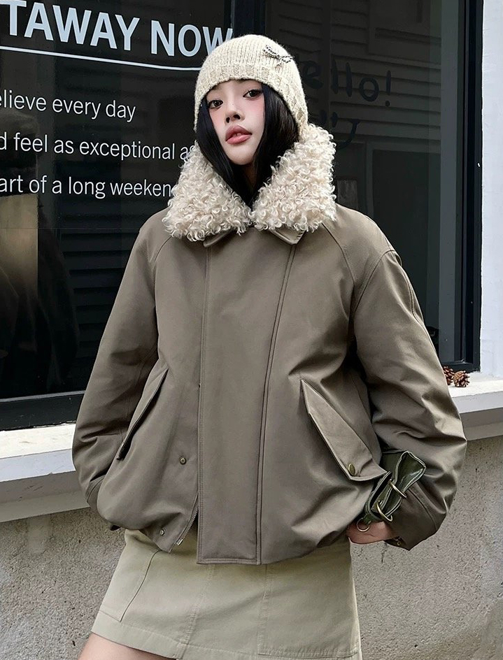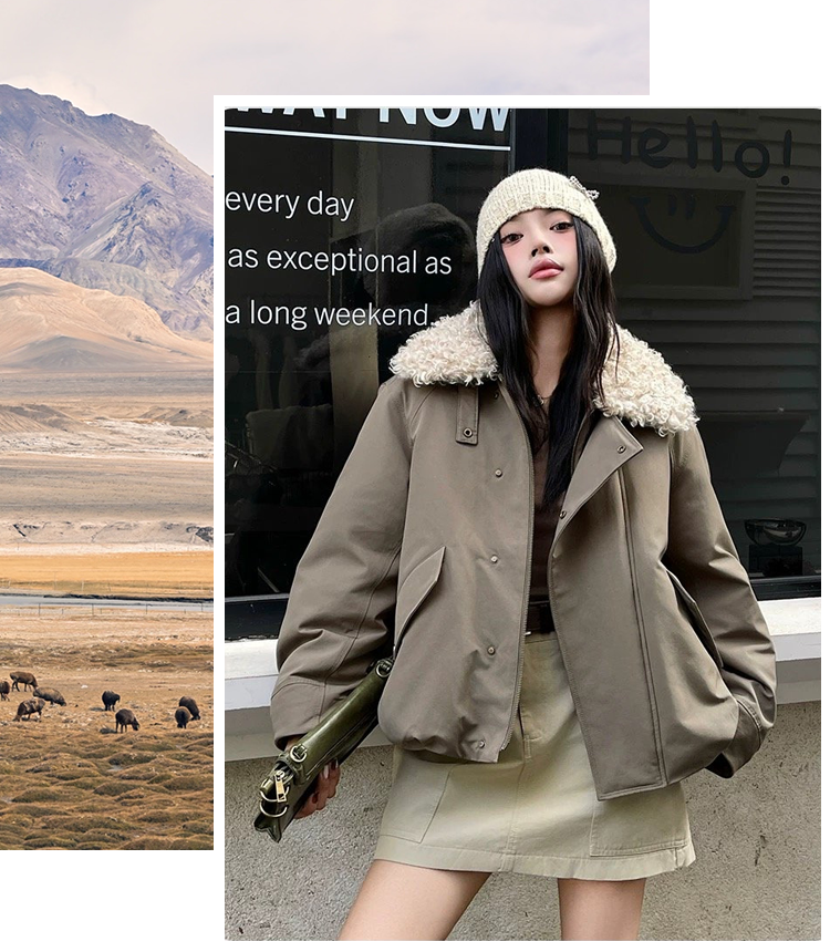 自带高级滤镜,毛绒领温暖又亲肤,宽松版型能轻松容纳内搭。