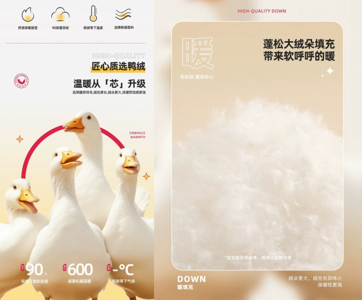 不仅羽绒好,蓬松度也超国际标准,竟有600!(蓬松度达到550以上就可以称为“优”)。