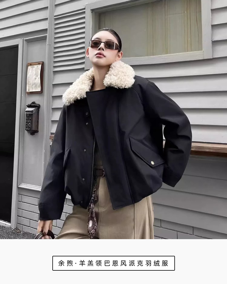 今天掌柜就给大家带来一款超惊喜——余煦·女士羊羔领巴恩风派克羽绒服。
