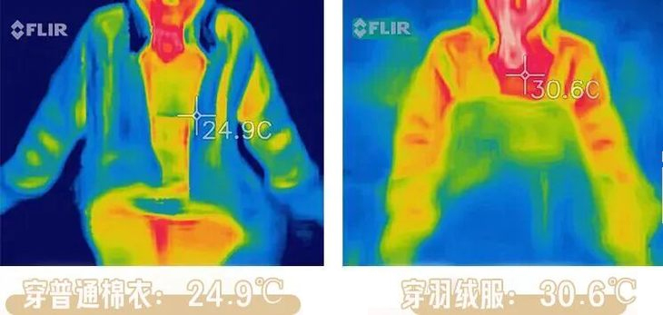 这里要重点解释下:羽绒服保暖主要靠空气,蓬松度越大,锁住空气就越多。外面冷空气进不来,里面热空气出不去,自然更保暖。