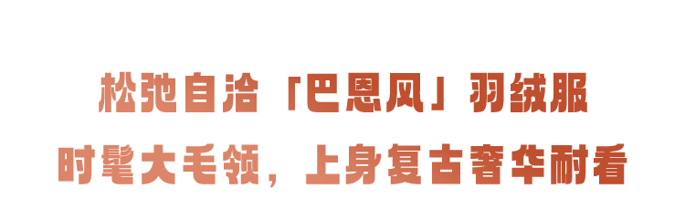 标志性的大卷毛领,带着皮草感的羽绒服,上身自带“我就是女王”的奢华和气场。
