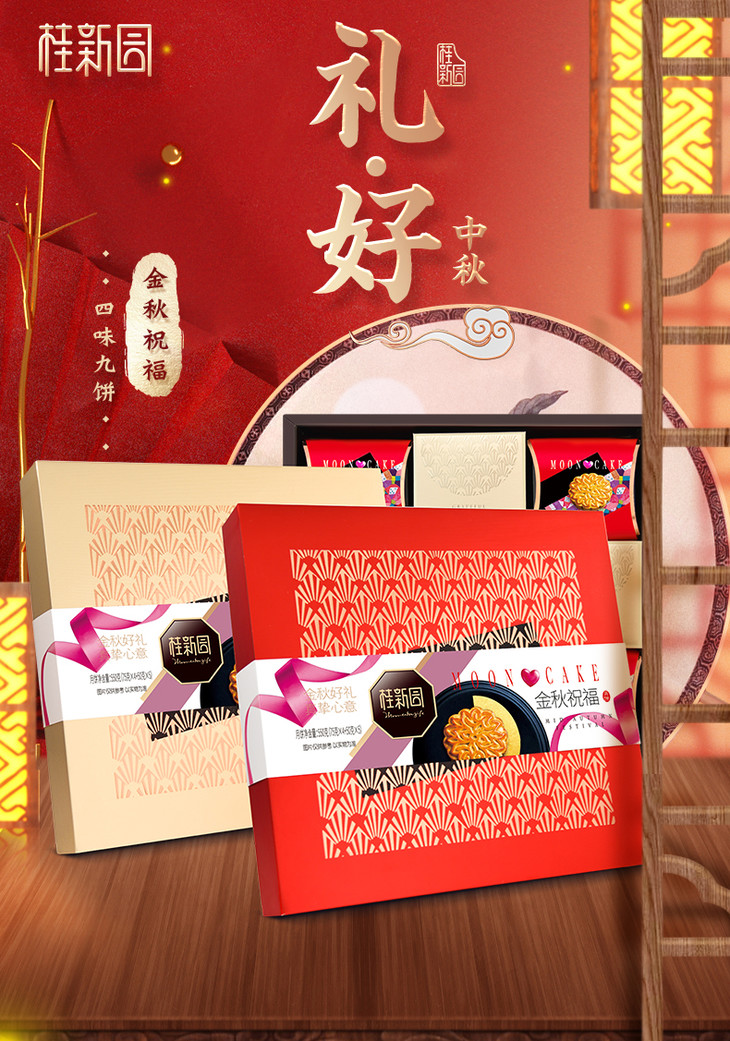 金秋祝福(金) 温州桂新园桂香村中秋节日月饼团购送礼礼盒礼品