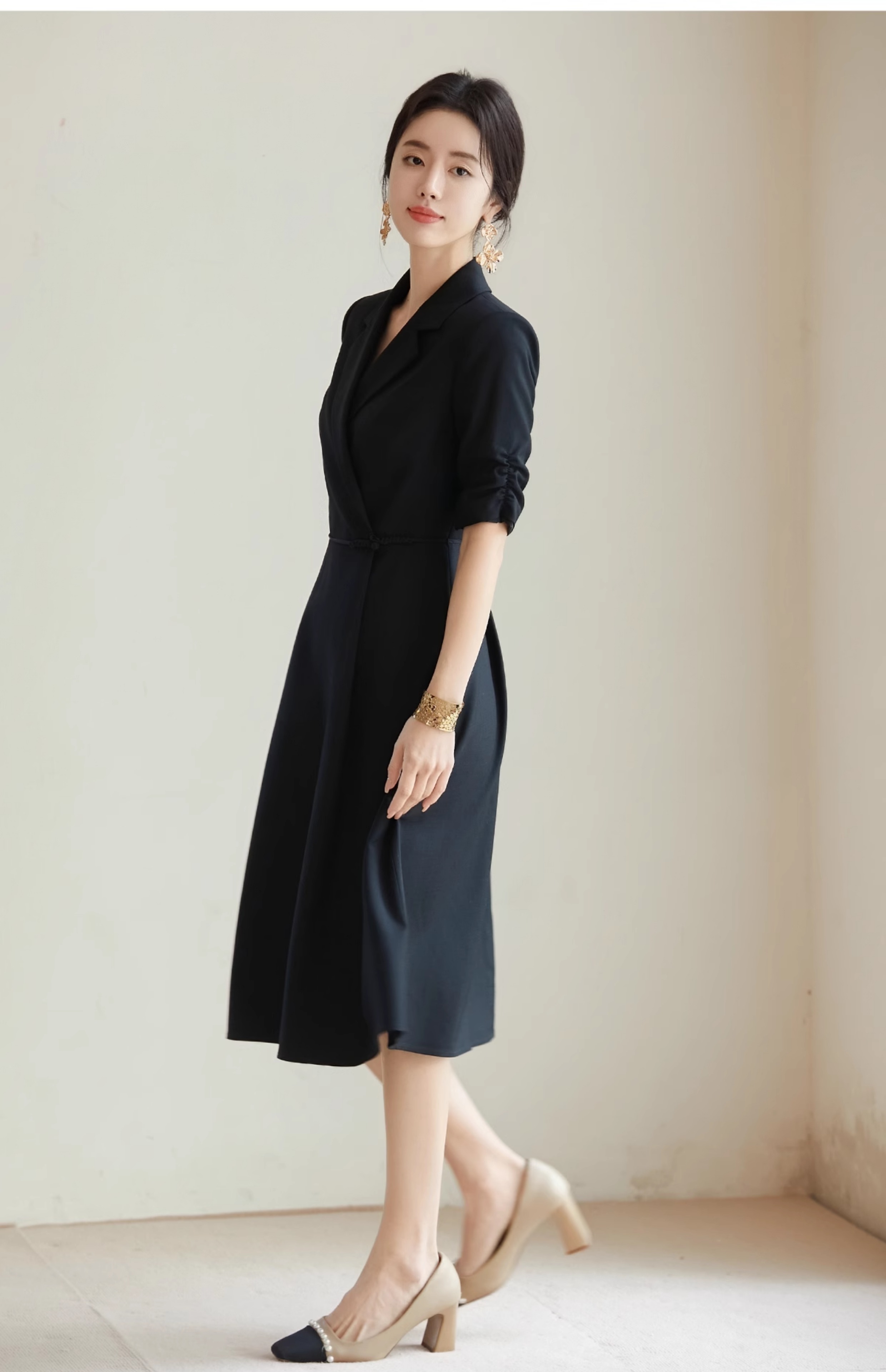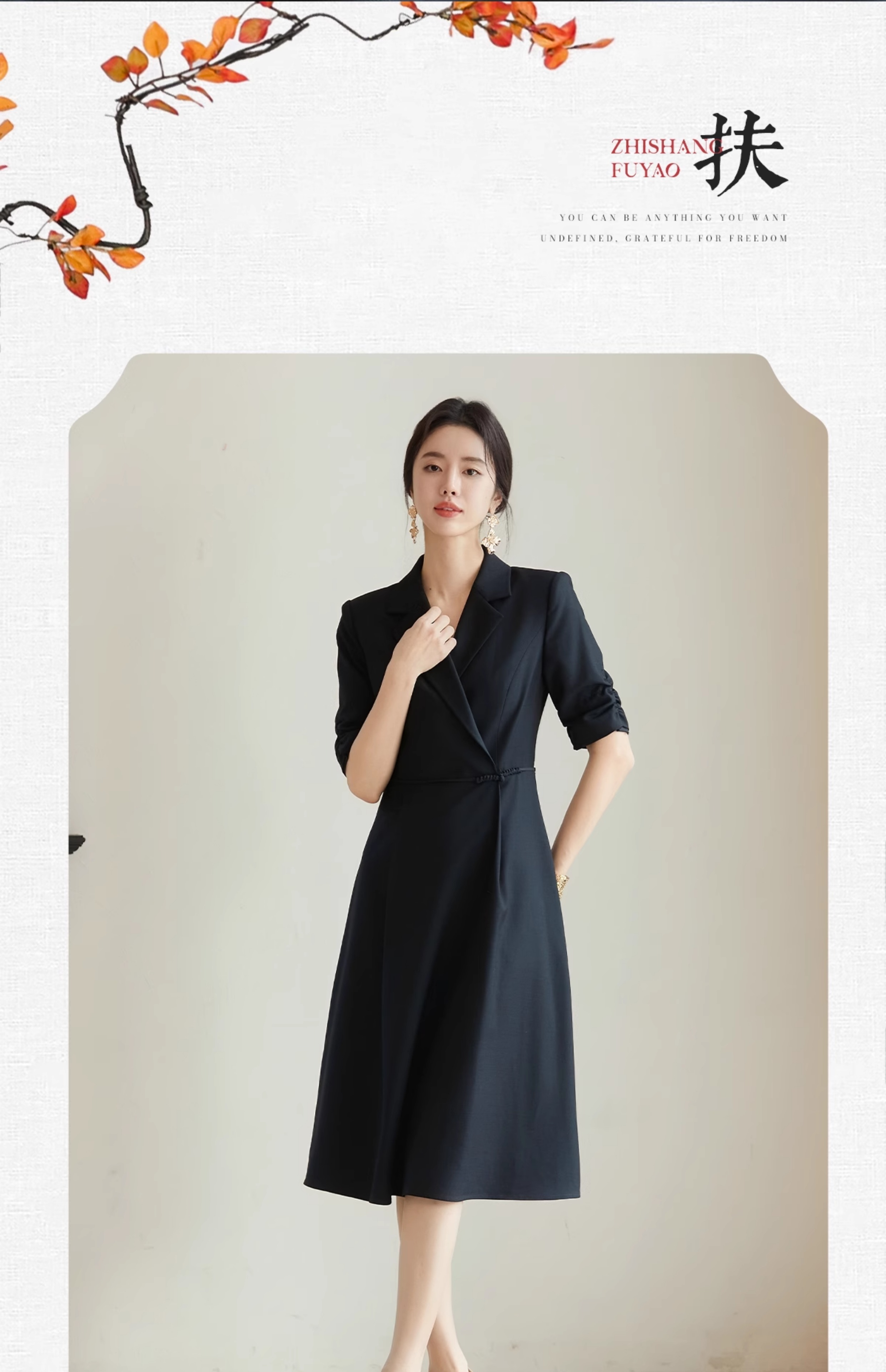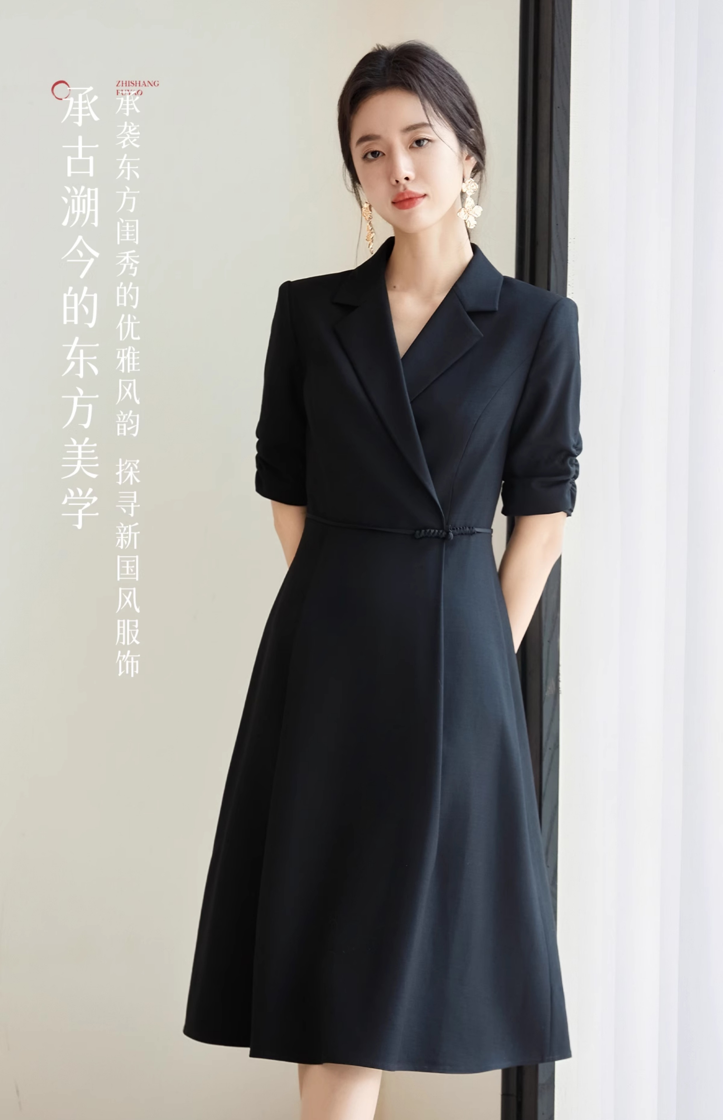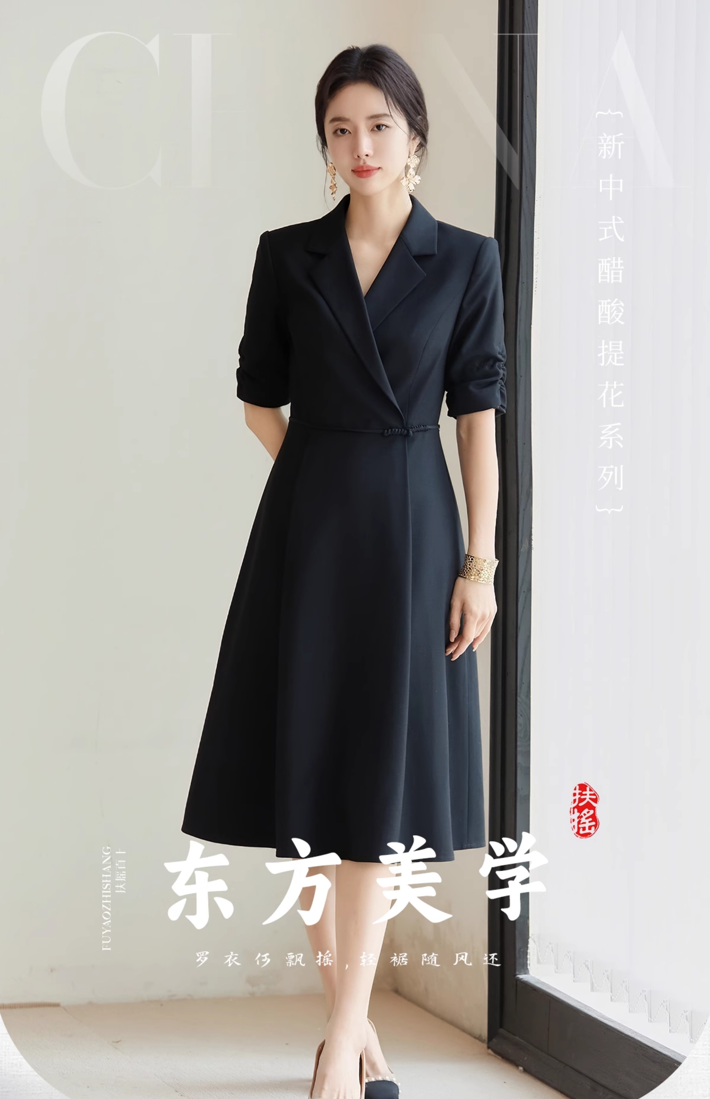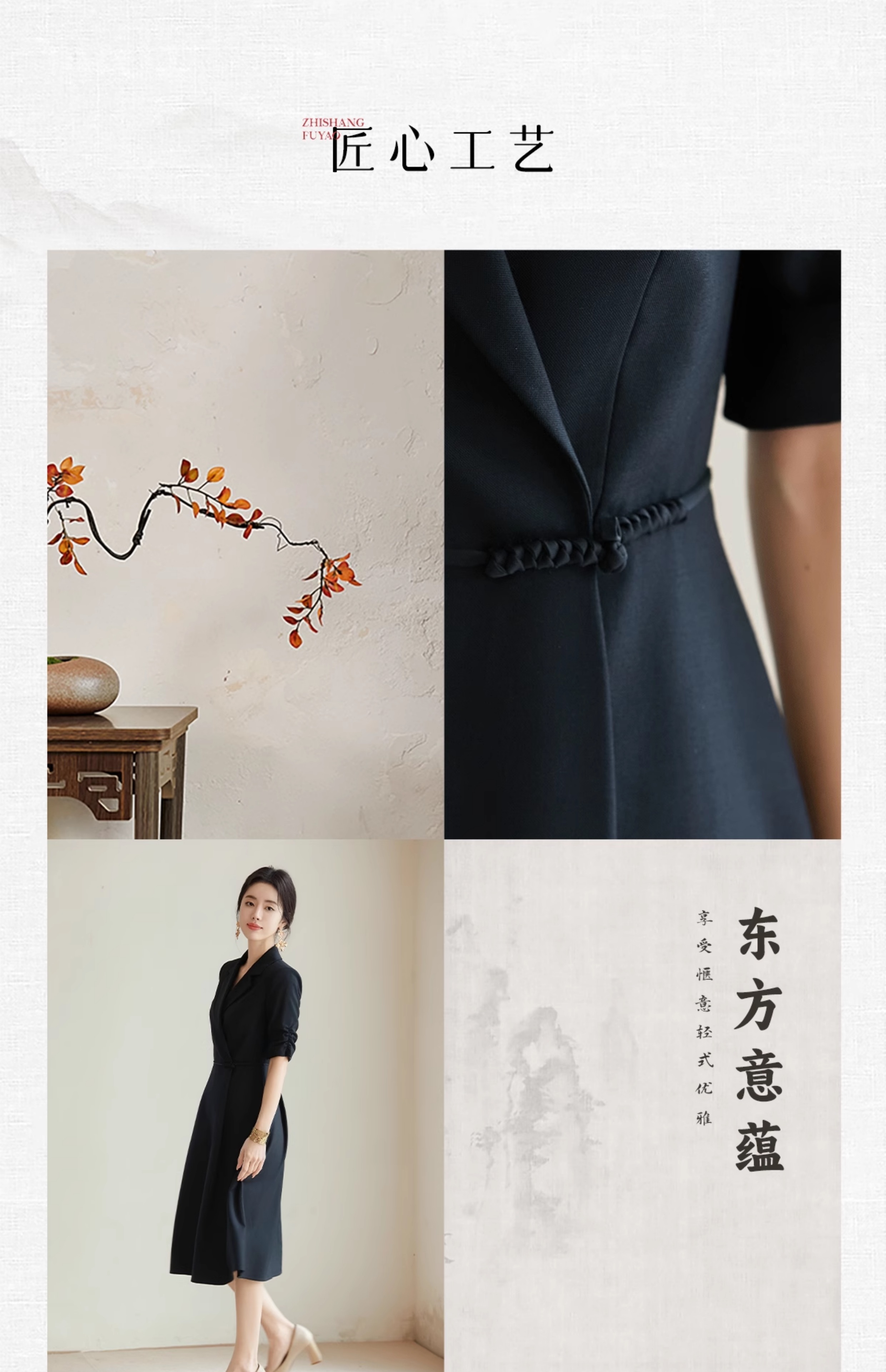 FUYAO扶摇 2025新款女神范连衣裙高级感修身显瘦国风盘扣黑色裙子