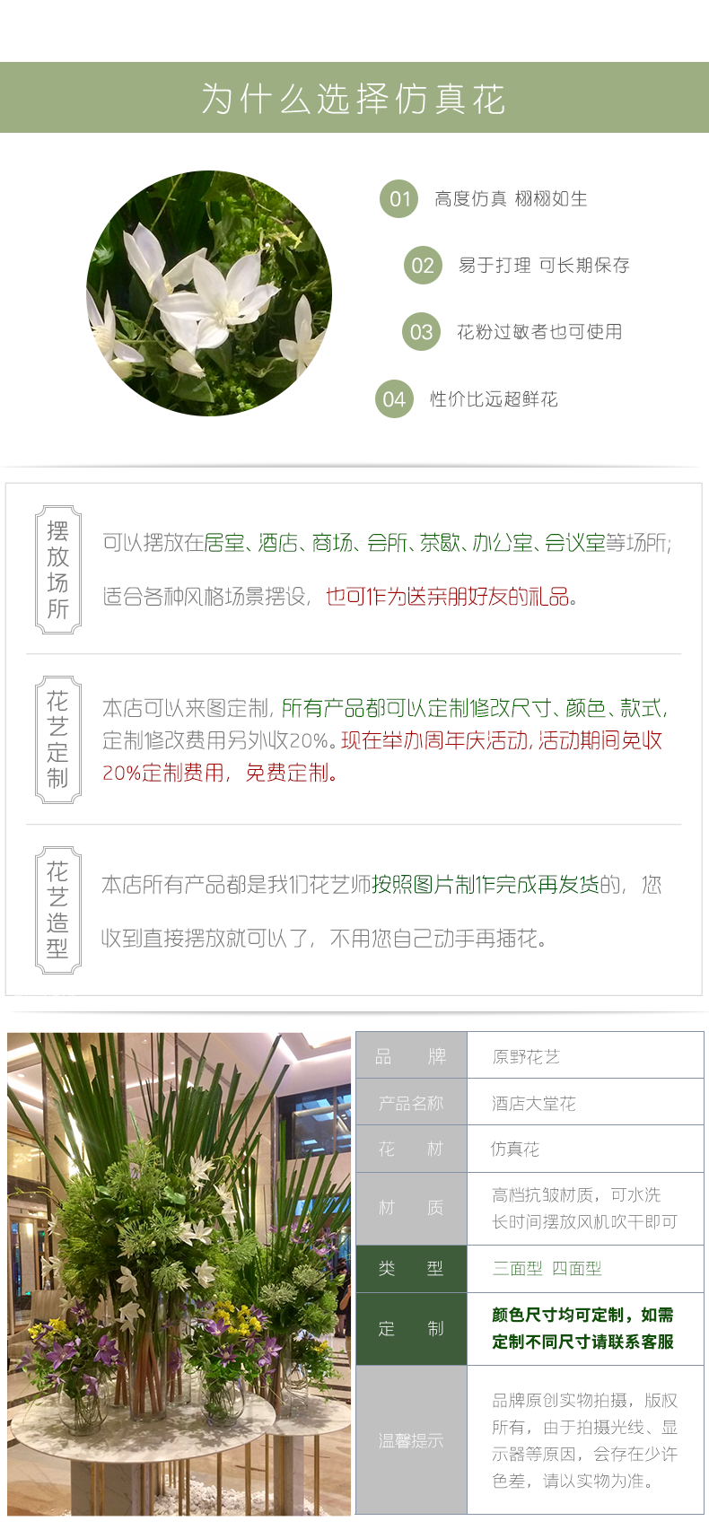 高档酒店大堂仿真假花摆设件圆桌售楼大厅会所办公楼咖啡厅馆装饰