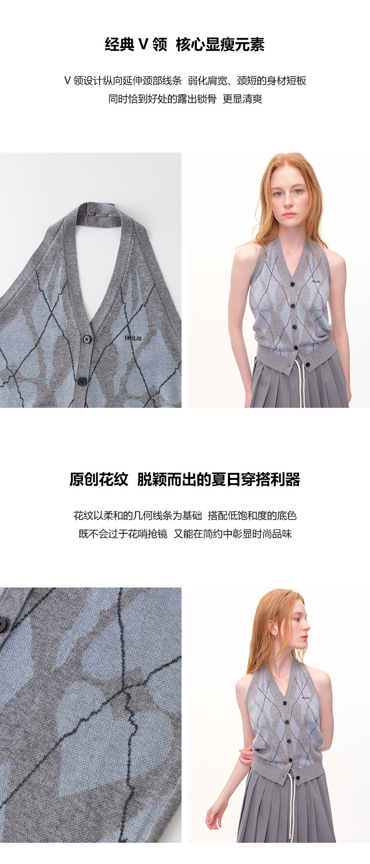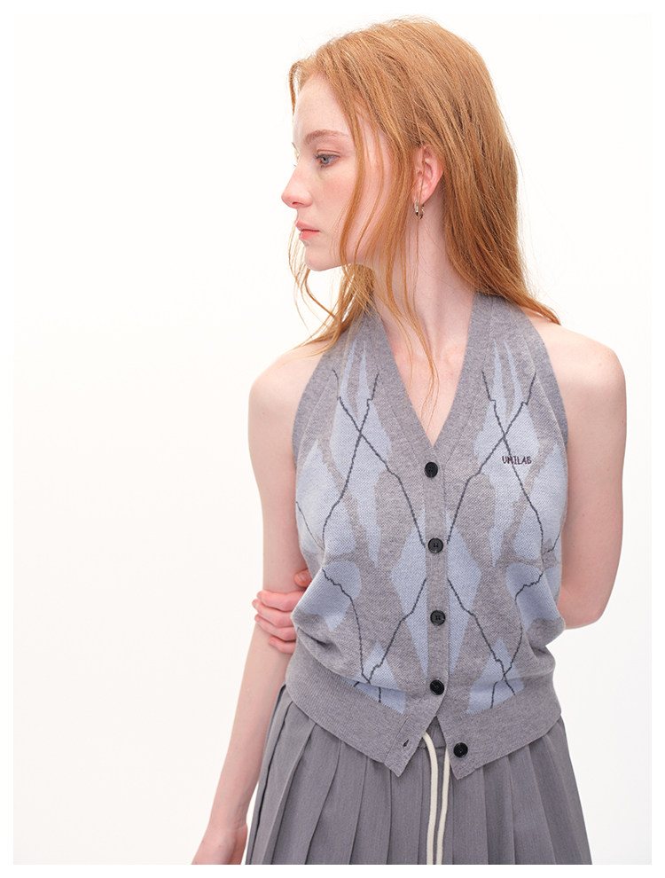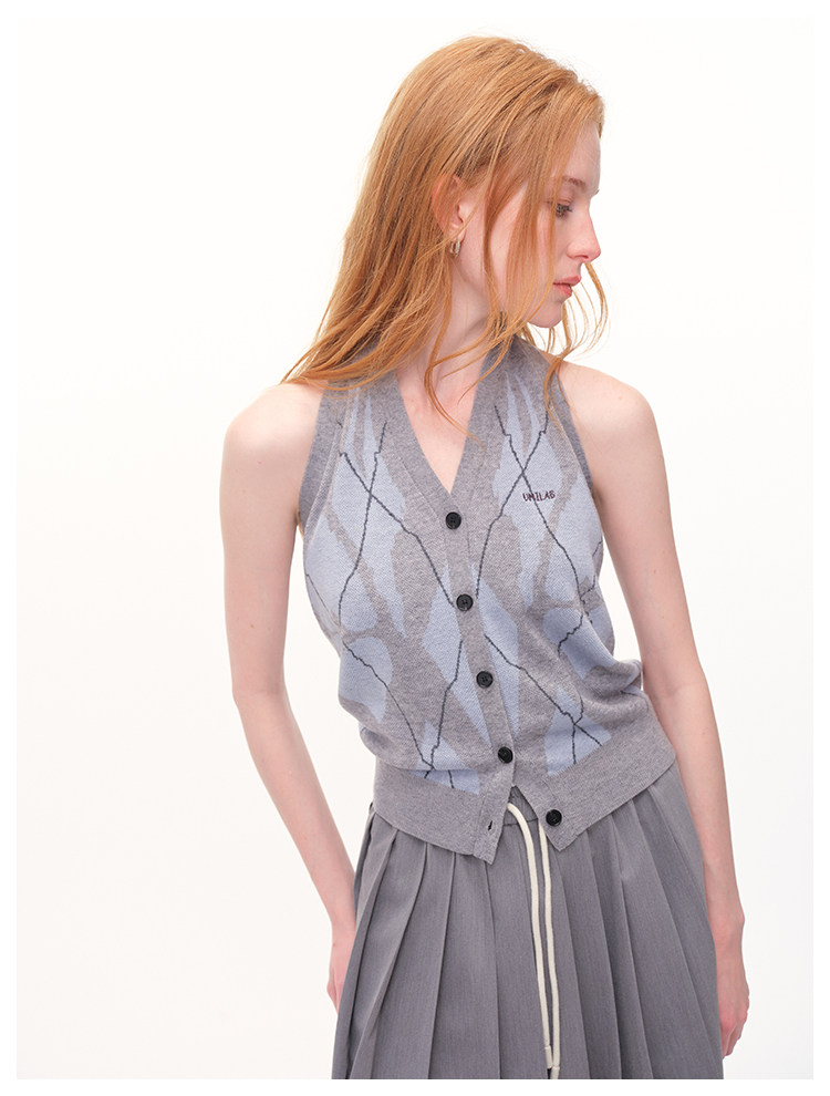 UMILAB|爱己*贵气预科 巴素兰精纺羊毛+醋酸原创格纹针织马甲M915V