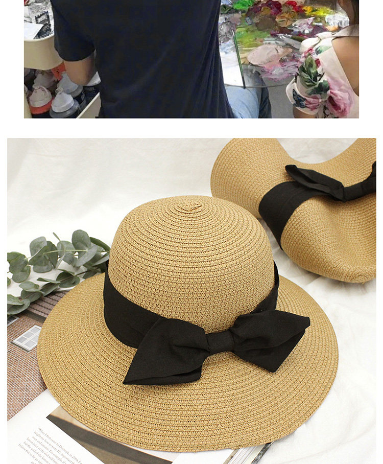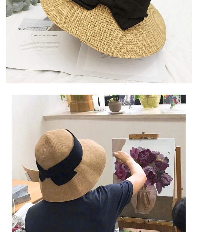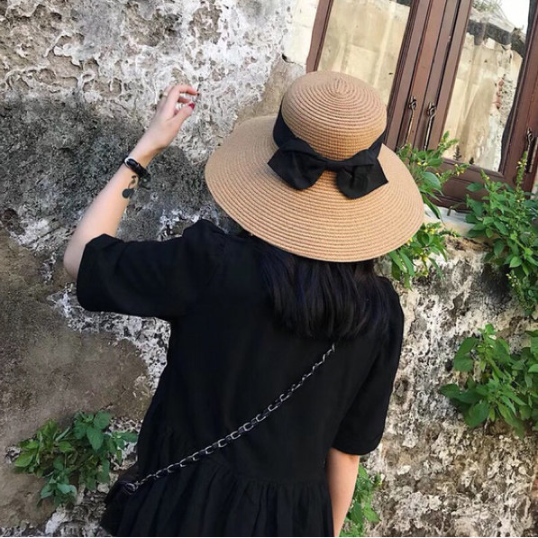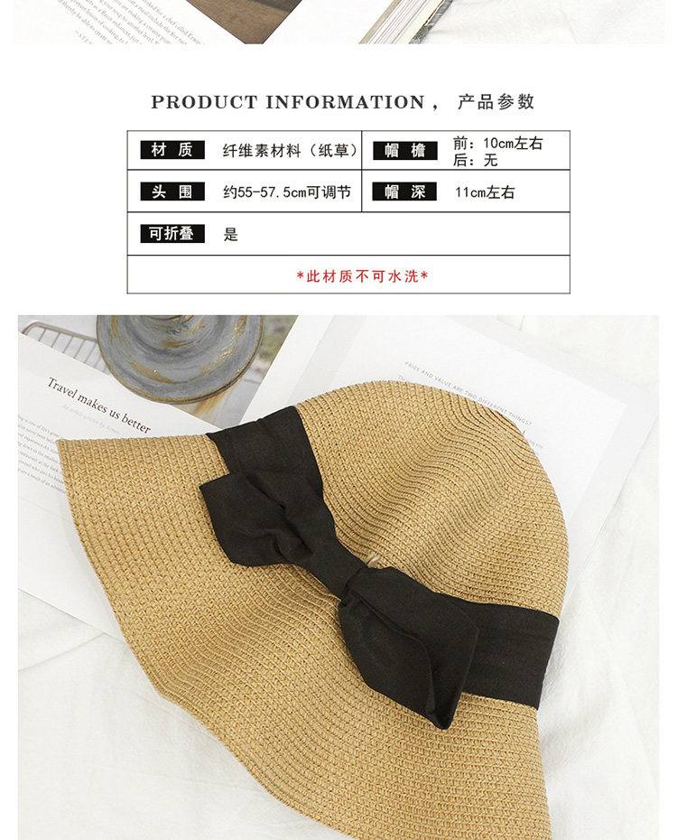 孙俪同款帽子 日系蝴蝶结草帽百搭可折叠防晒遮阳帽