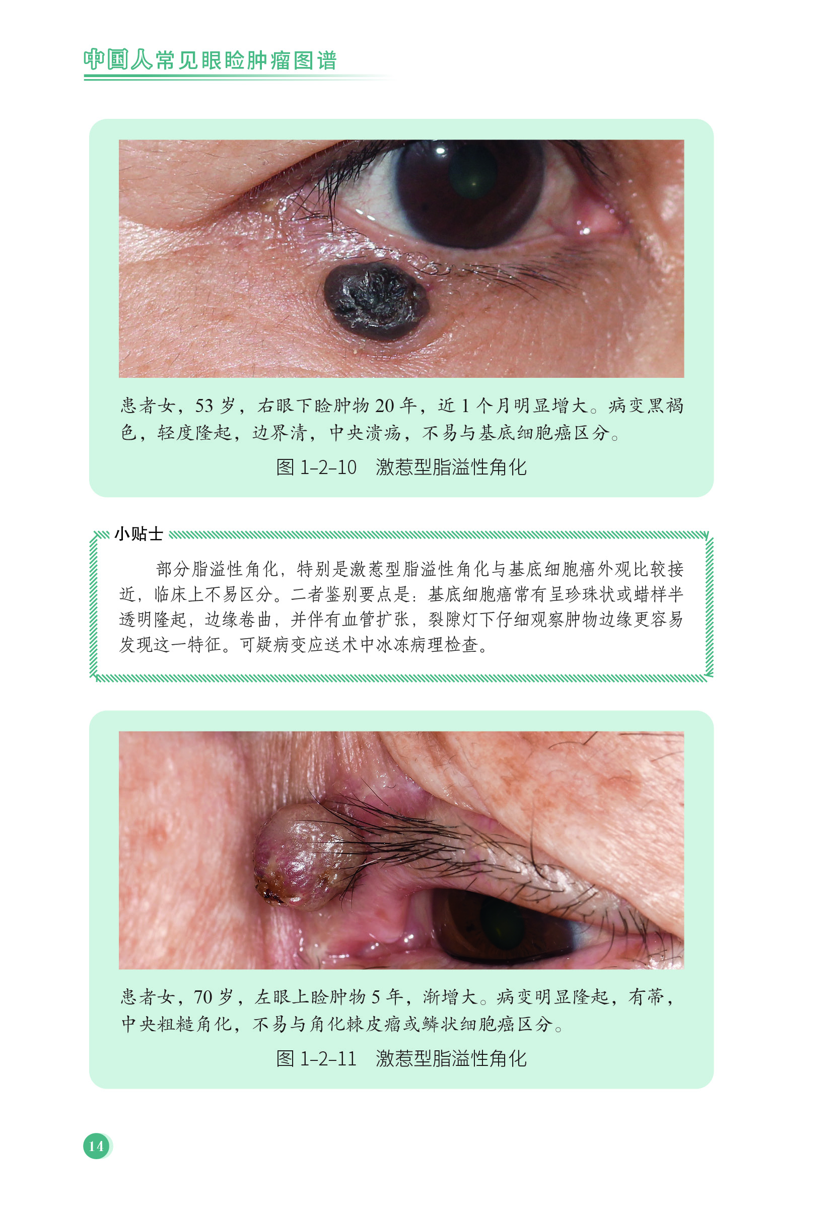 本书选取了作者从事眼科工作 20 年来自认为比较有代表性的一些眼睑肿瘤病例,以常见病变为主,尽量展现这些病变不同类型和在不同时期的表现,但为了全书内容的完整性,也介绍了一小部分相对较为少见的病例。书中共收集整理了 52 种疾病 340 例患者近 600 张图片。眼科教科书中,眼睑肿瘤的章节仅用文字描述比较困难,图片可使读者直观、准确地理解疾病特征。因此,本书采用图谱的形式,结合病理知识,从一个临床医生的视角,对眼睑的占位性病变,做了系统的介绍。本书内容能帮助初入临床的精英住院医师们,同时对专门从事眼整形专业的医生们也有所助益。