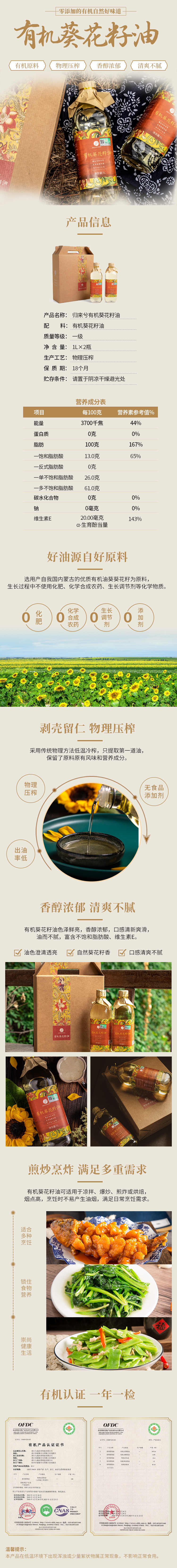 有机葵花籽油1L/瓶×2瓶 礼盒装 全国配送(偏远地区除外)