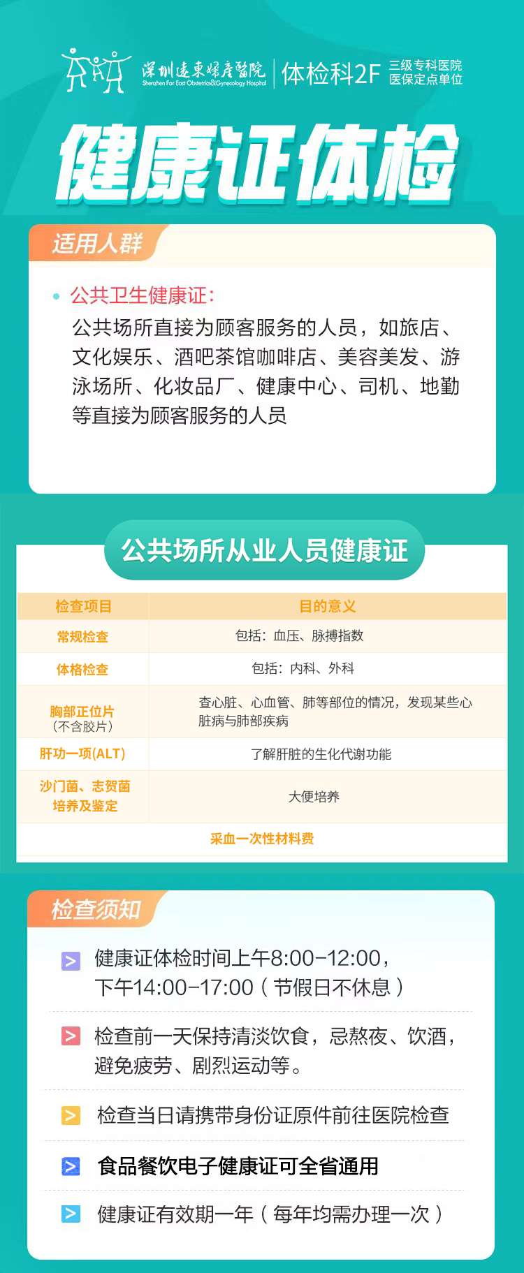 【会员专享】公共场所从业人员健康证-远东罗湖院区-体检科