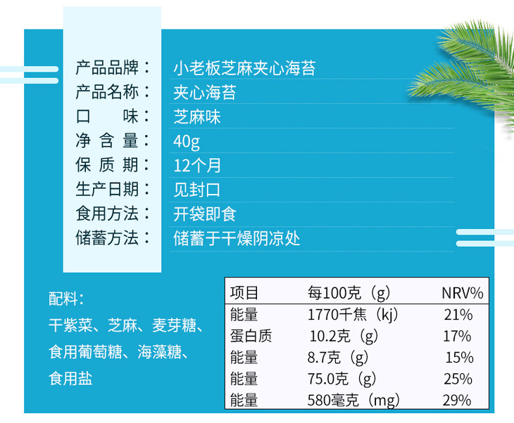 小老板芝麻夹心海苔40g