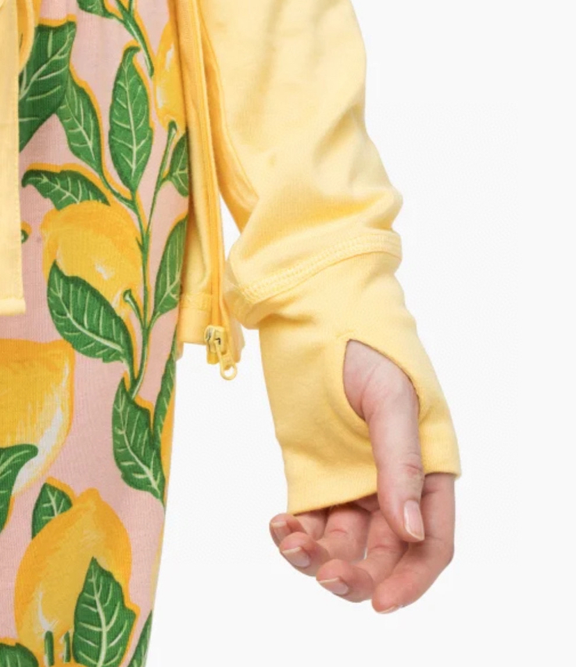 Munki Munki女士拉链帽子衫三件套居家服只要199元🉐包税包邮到手🔥让舒适成为日常的标配,采用竹纤维和棉,亲肤柔软、透气轻盈,适合春夏穿着,套装包含一件可单穿的背心、一件带拉链与拇指孔的连帽外套,以及一条松紧抽绳束脚裤,既方便又时尚,轻松应对各种室内外场景。清新的柠檬插画印花设计,搭配温暖明亮的黄色系,增添一抹好心情。绿色款是蜻蜓设计,尺码S-XL码,裤装贴心设有双侧口袋,实用性与美观兼具。适合居家、散步、旅行、睡前放松等各种场合,是您不可或缺的家居穿搭选择。