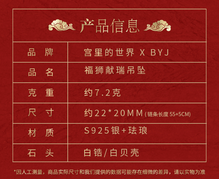 【采购专享】宫里的世界&BYJ 福狮献瑞珐琅彩 两用项链/胸针