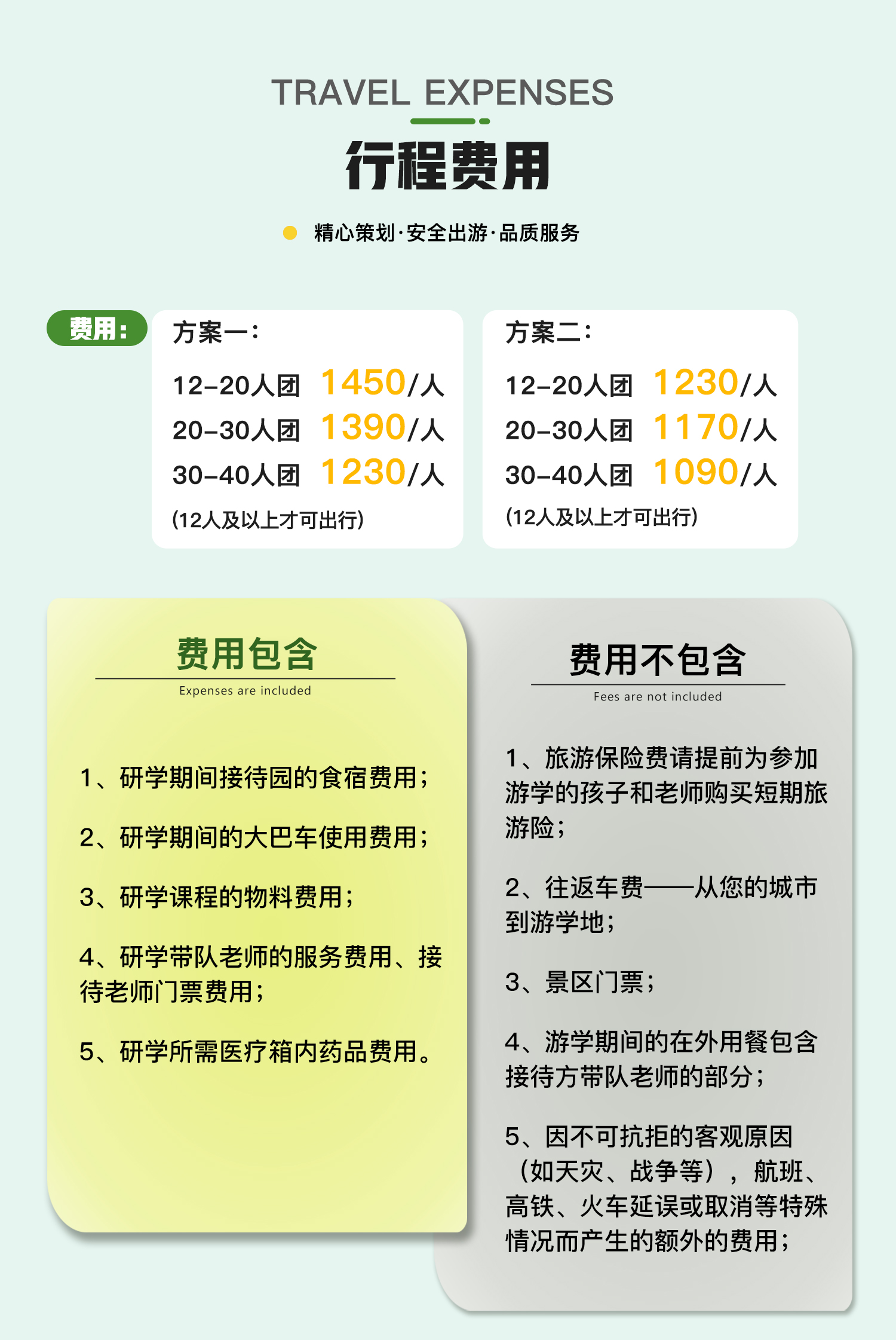 成团人数越多,费用越低,目前收费金额为:12-20人团