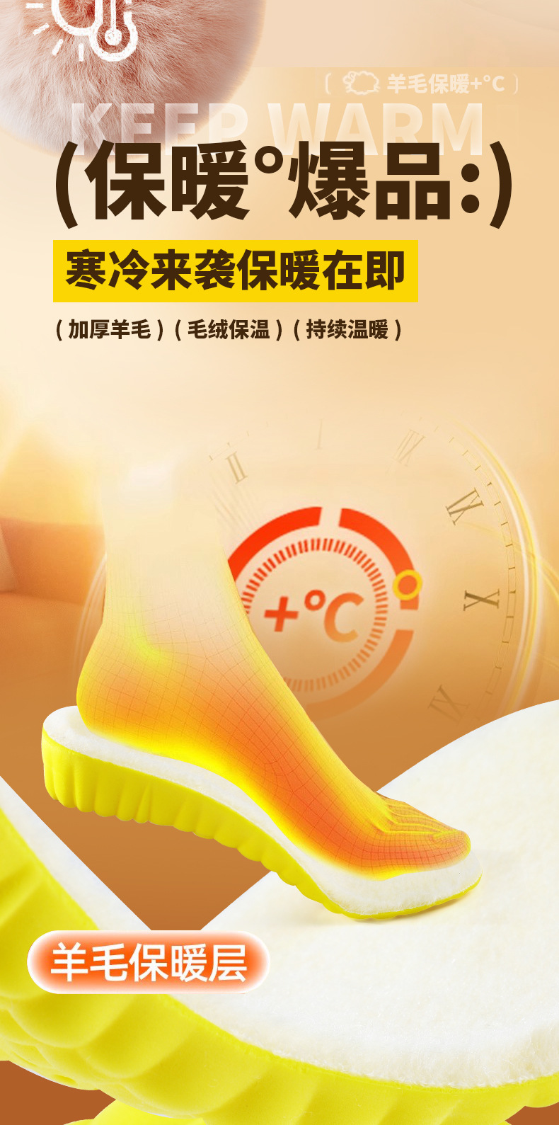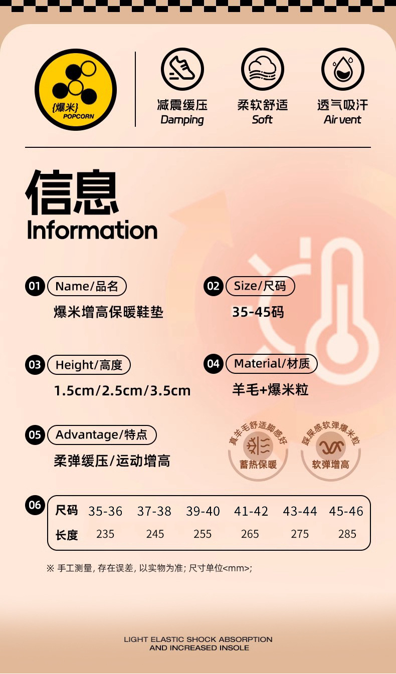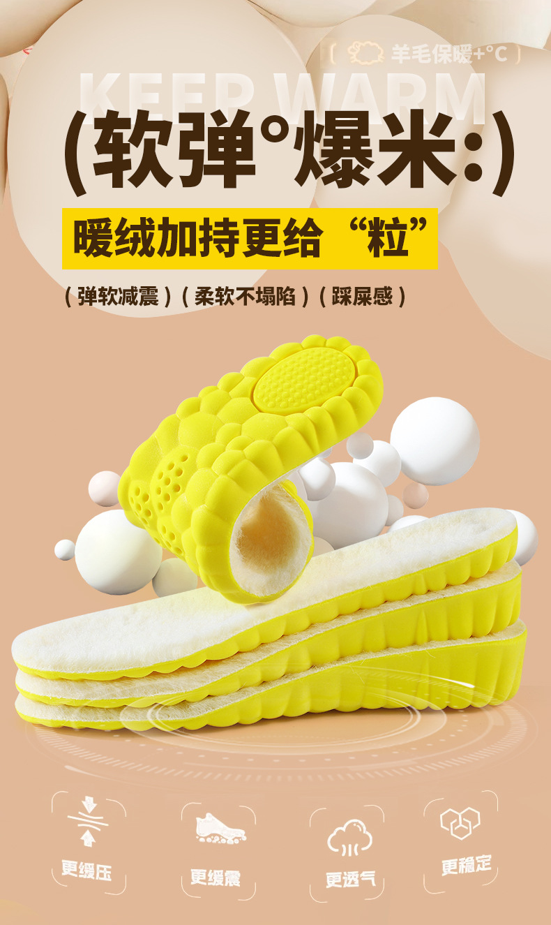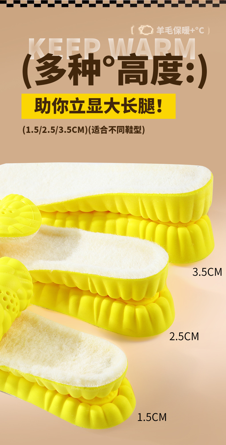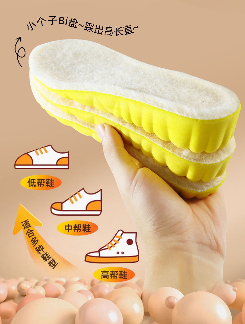 【粉丝专属❗️羊毛保暖增高鞋垫】弹软减震,柔软不塌陷,踩屎感超舒服!爆米运动舒适高弹减震马丁靴休闲鞋透气吸汗抑jun防臭全垫