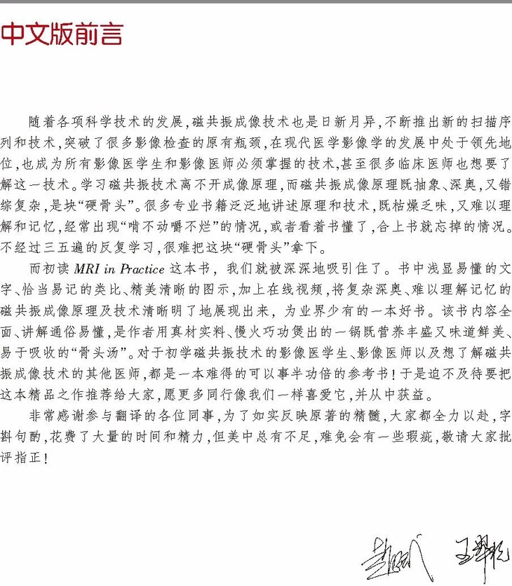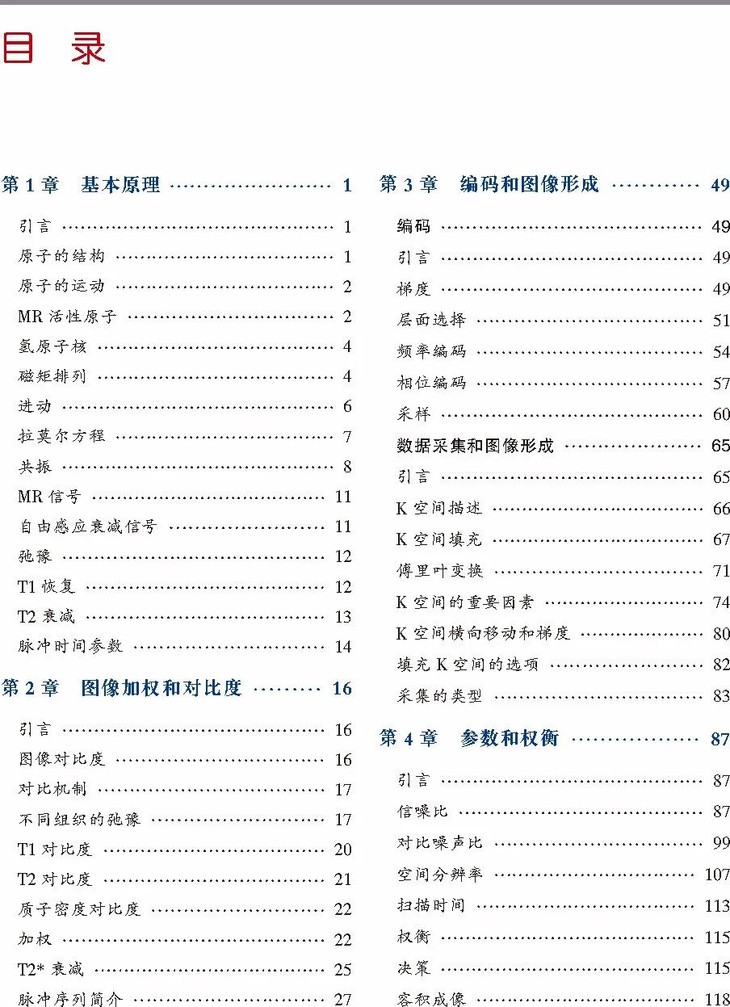 本书以通俗易懂的语言详细论述了磁共振成像的理论基础,使读者能够全面理解MRI系统的性能和相关操作。