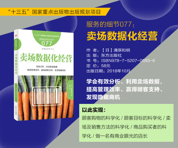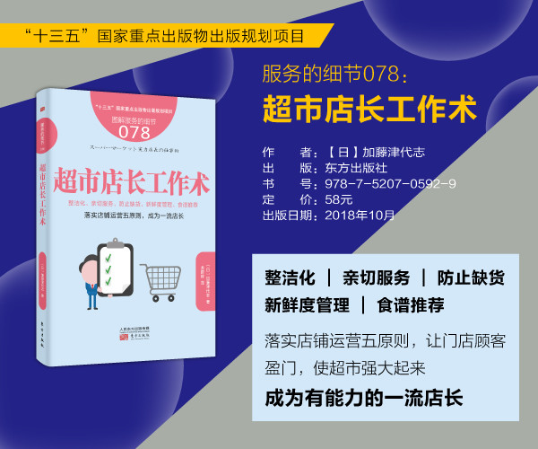 东方出版社从2012年开始关注零售业的升级转型,特地引进了一套“服务的细节”丛书,该丛书全部引进自日本,是东方出版社“双百工程”出版战略之一,专门为中国服务业产业升级、转型提供思想武器。