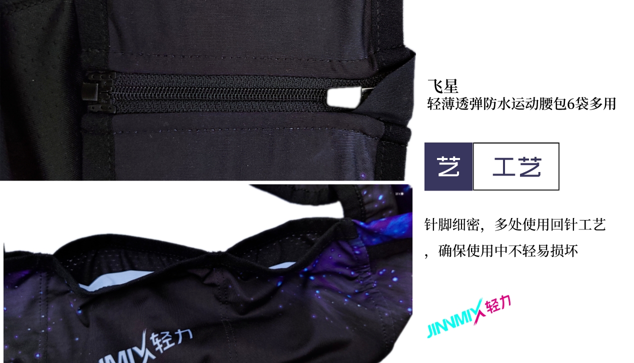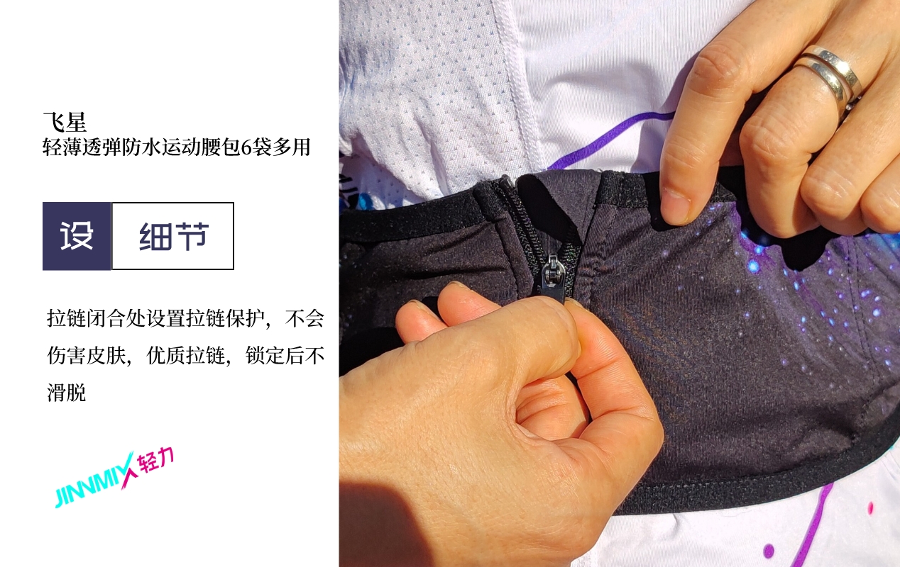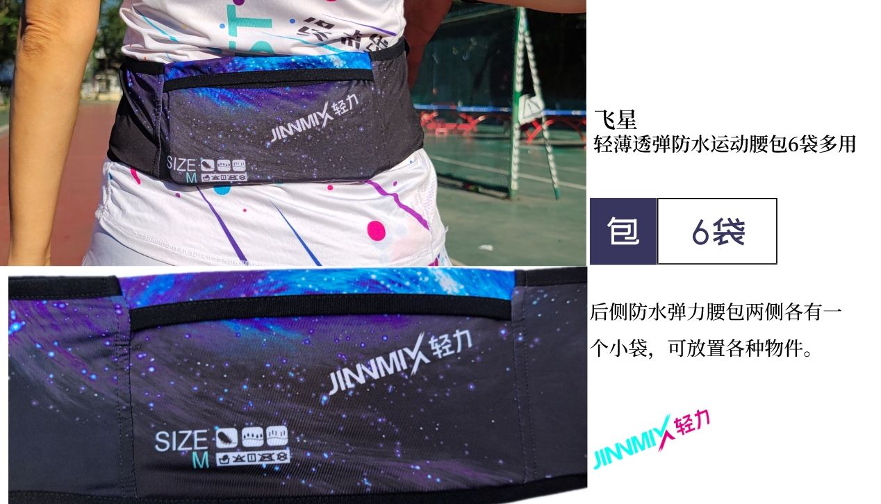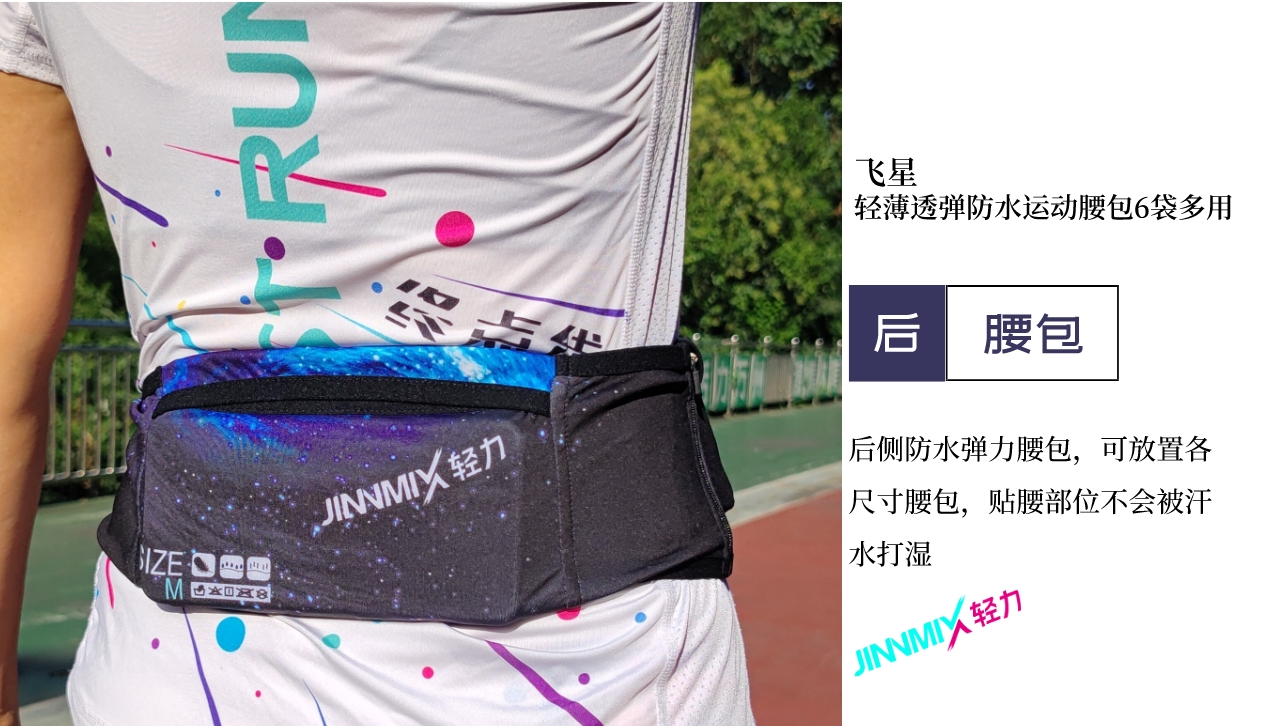 JINNMIX轻力飞星轻薄透弹防水运动腰包6袋多用